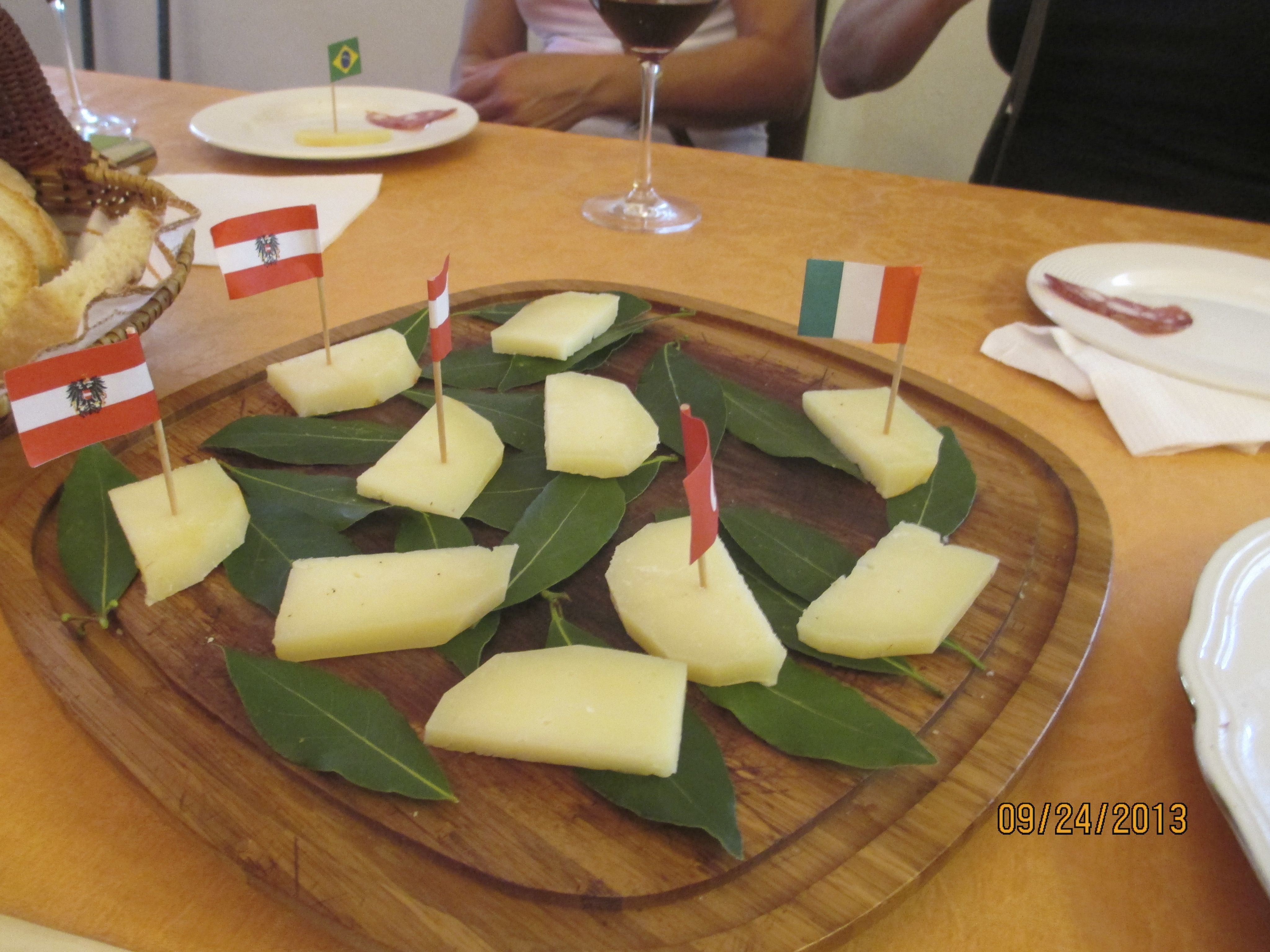At Casa al Bosco you are off the beaten path and happily surrounded by ripening olive trees, tobacco fields, vineyards and the sound of chirping birds. Not only the small vineyard for homemade wines made by Adrianno of Casa al Bosco, but of Simona of Villa Sant' Anna. A vineyard owned by a sixth generation wine maker who just happens to be a woman who is training her two daughters to take over. Who took the time to give us a two hour wine tasting complete with a delicious lunch of several types of cured meats, cheese decorated with the Italian flag and crusty bread to pair with the most elegant of Nobile di Montepulciano wines with dark cherry and rich plum aromas. Elegant just like the owner.