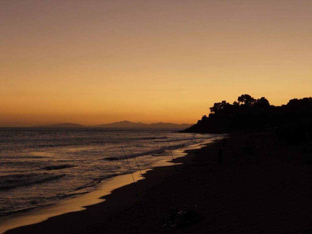 Tramonto Castiglione Della Pescaia, Toscana. Veduta sulla spiaggia di Castiglione