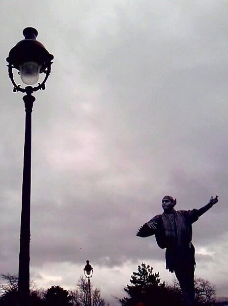 Un abile personaggio che si destreggiava su un muretto a Montmartre, Francia.