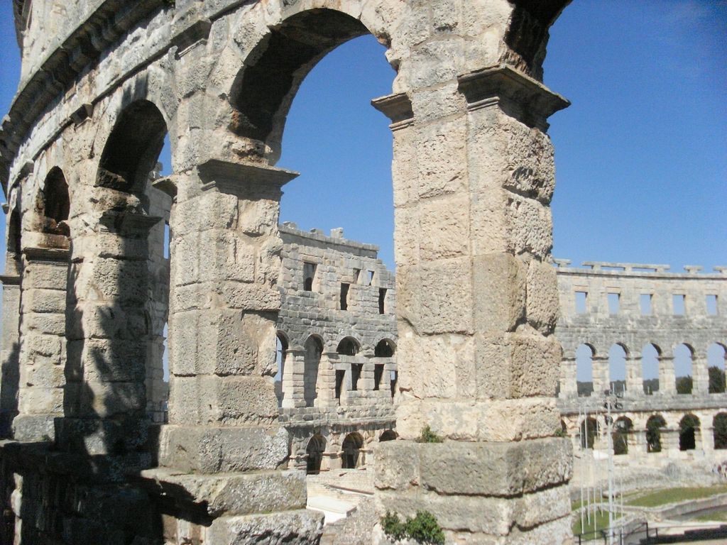 L'arena romana di Pola, in tutta la sua maestosità, testimone di altri tempi.