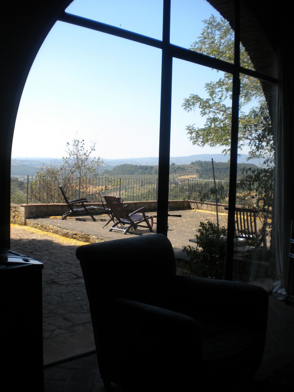 Foto scattata dall'interno della casa alla splendida terrazza panoramica con vista sulle collene di Barberino al d'Elsa, arrivando alle torri di S. Gimignano (non visibili nella foto). Quella terrazza è stato luogo di chiacchierate, relax, colazioni e letture della nostra vacanza.