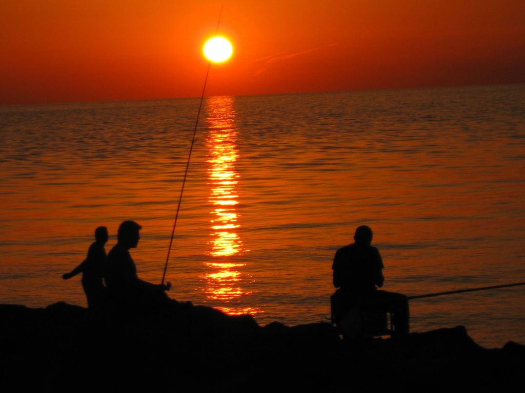 Saw breathtaking sunset while walking along the Fiumicino pier and just happened to see these fisherman.