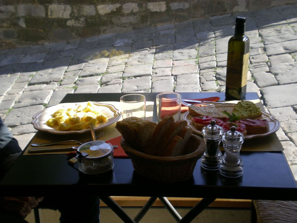 Lunch is served in Montalcino - waiting for the Brunello