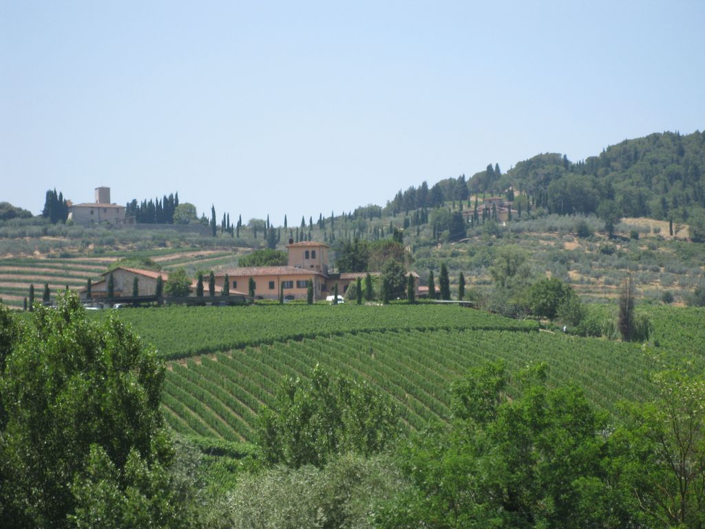 Viewing the beautiful landscape of the hills near Siena and the perfectly chliled local wine.