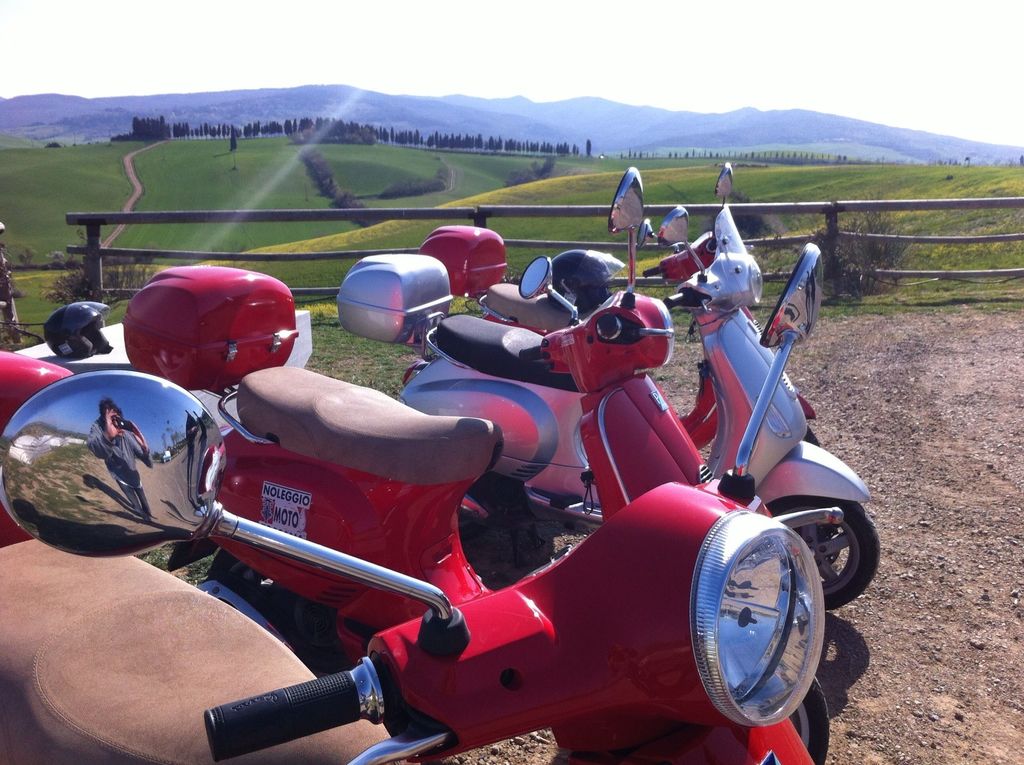 Vespa tour, a great way to discover Tuscany. here we have a stop in Lajatico!