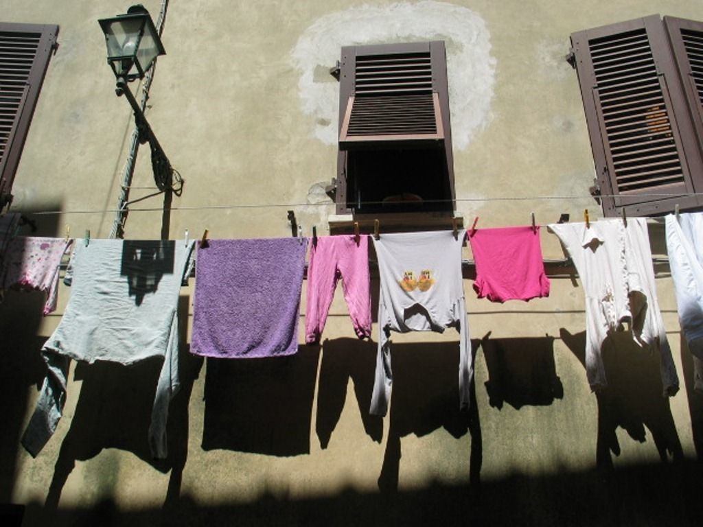 ook in Toscane wordt de was buiten gehangen - onwillekeurig moesten we even aan Berlusconi denken......