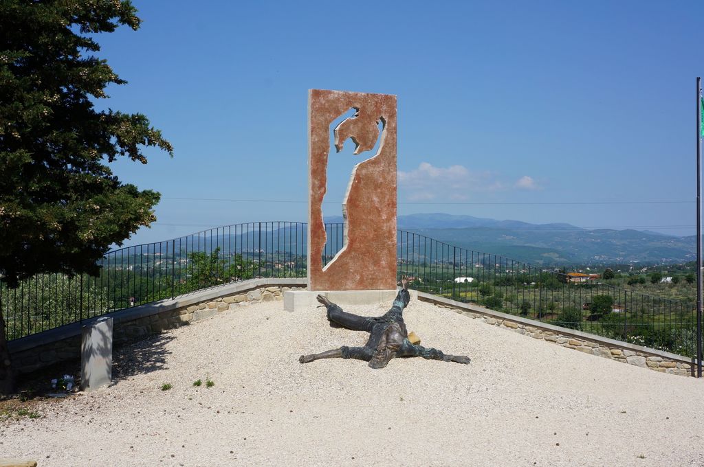 A memorial to those fallen in wars, across the road from the church at Pieve di San Polo, near Arezzo in Tuscany