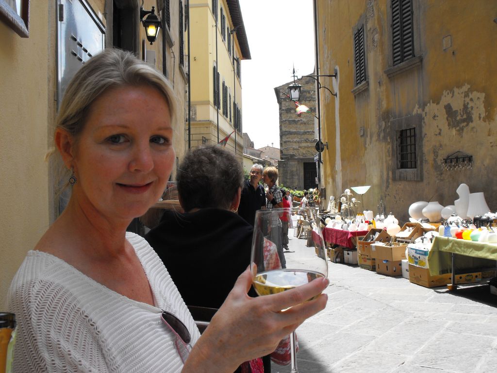 My niece having a glass of wine in Arezzo during our family vacation in Tuscany. Arezzo was a beautiful surprise.