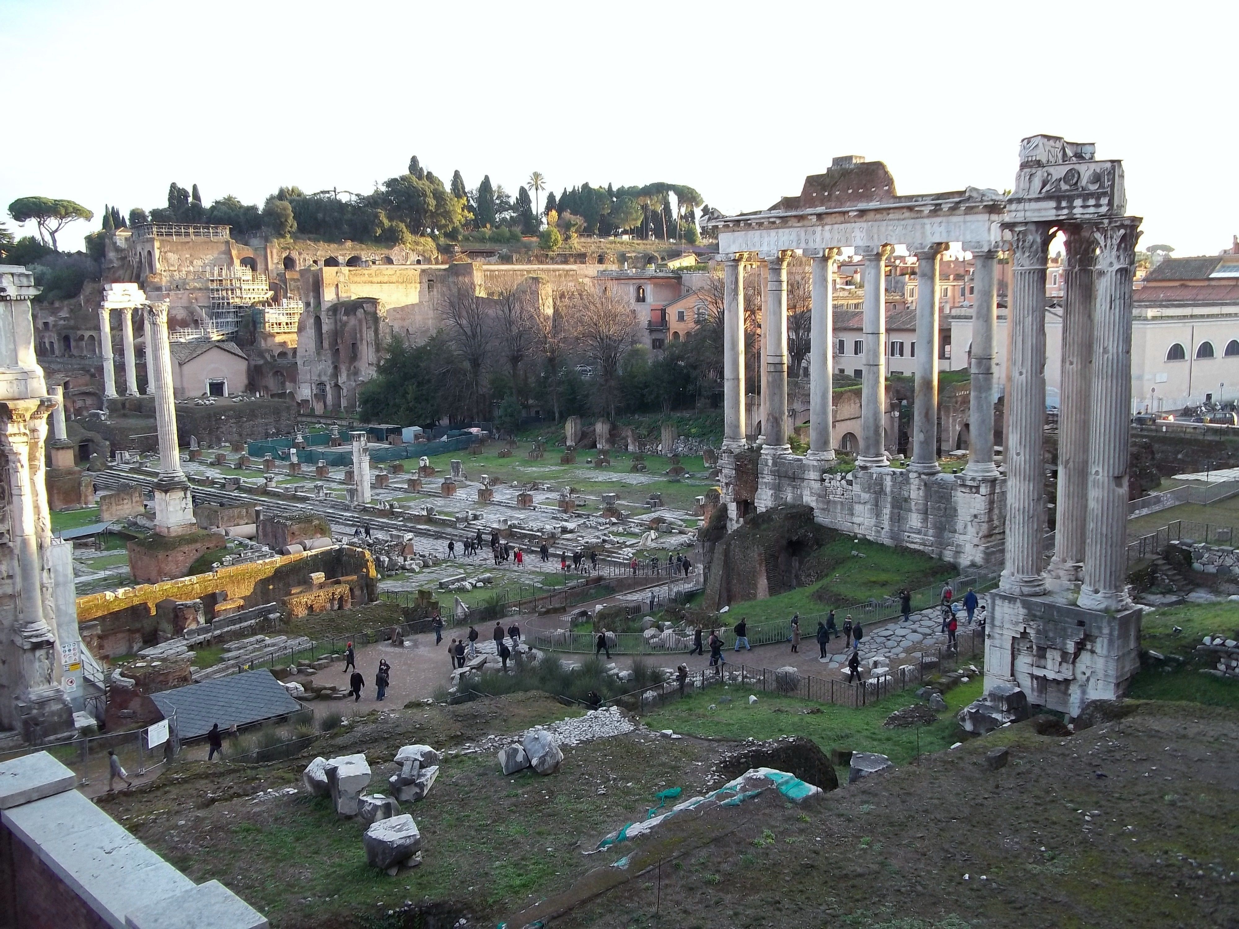 A view of the Roman Forum taken in the late afternoon.