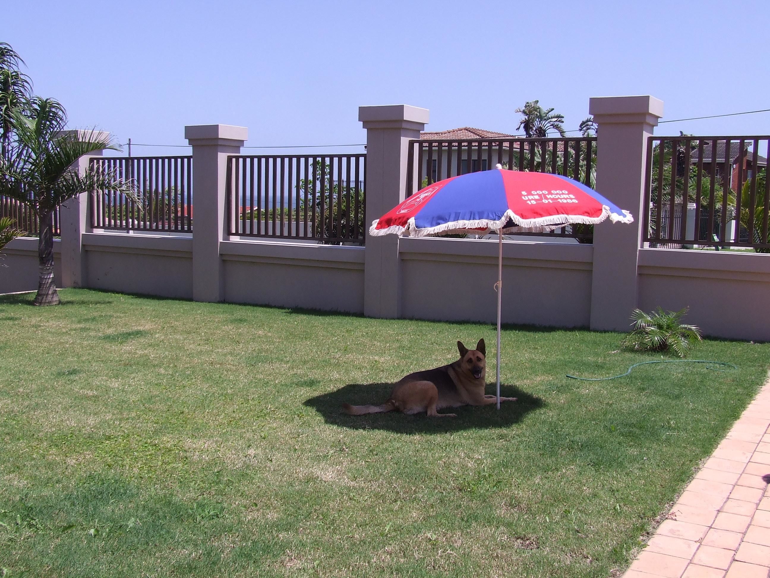 Sheba our German Shepard on holiday at our beach house in Port Edward, KwaZulu-Natal, South Africa. The ocean as seen on the back ground.