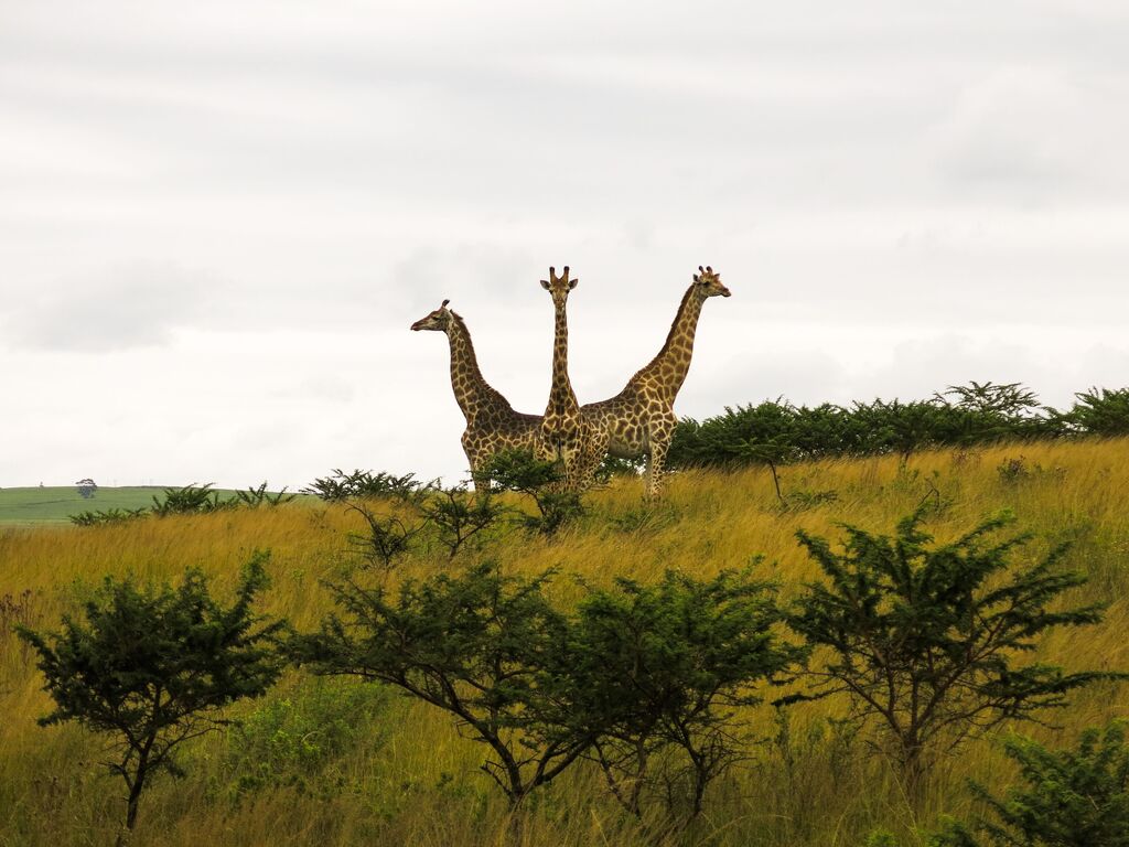 L'unione fa la forza... Un'istante catturato mentre tre giraffe si dispongono in guardia da eventuali predatori