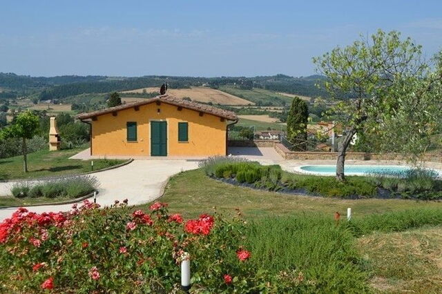 We had wonderful holidays at Villa Roberto. The view from the terrace is stunning... we never got tired to watch the beautiful sunset! The private pool was also very nice to have! It was very hot while we were there and we were glad to have it! The inside of the villa is pretty small but practical and we had everything we needed. And we spent most of the time on the terrace or in the backyard. It's also well located: we could easily go to Firenze, San Gimignano, Sienna, Greve in Chianti, etc. The villa provides lot's of intimacy and was perfect for a small family. We travelled with our baby and our wonderful host lent us a babycot and a highchair. The only negative point we could have is that the beds weren't very confortable, but even with this, If we go back to Tuscany again, we would choose the same place.