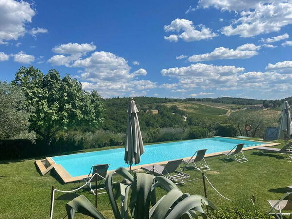 Property is stunning with beautiful views and pool. We had two families who had taken the property and doesn't work with two families and is designed for a big group as the dowbstairs apartments C doesnt have all the amenities you need like toaster, coffee maker and microwave. It is not a property designed for two families but would be good for one big group. The aircon in apartment B didn't didn't work which made it unusable. The property needs basic thibgs like bin liners, oven gloves, kettle etc. It also neefs fans in ghe livibg kitchen area due to the extreme heat. The host Beatrice was very helpful and is a brilliant host and came around to sort any issues. She also made a dinner reservation for us at a very nice place called Locunda whih was a great restaurant!! Thanks Beatrice for making our stay great!!