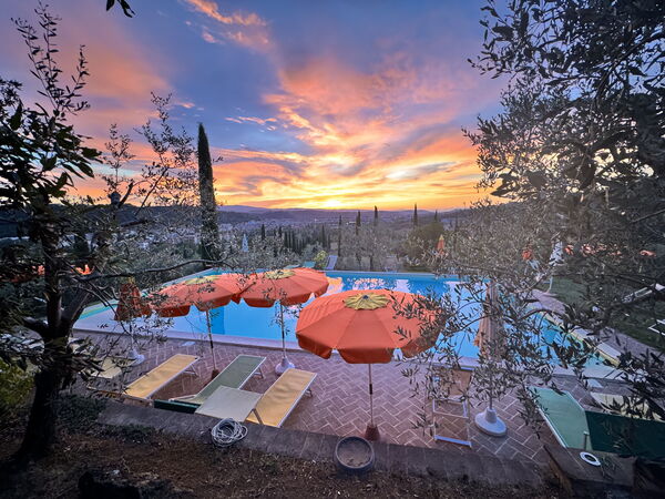 The property is high in the mountain above Cortona. There is plenty of space for a large group. We had 8 adults and 5 small children. The pool is nice but not cleaned everyday. There is no air conditioning and no screens on the windows. Too many bugs! Make sure you arrive with essentials: toilet paper, napkins, disposable plates, water, etc. none of that is provided. The parking is very awkward.