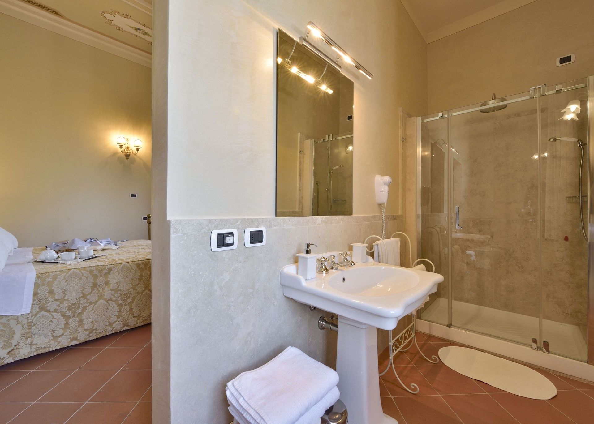 Slaapkamer met badkamer 7: tweepersoonsbed, WIFI internet, airconditioning, tv, wastafel, toilet , bidet, douche, haardroger.