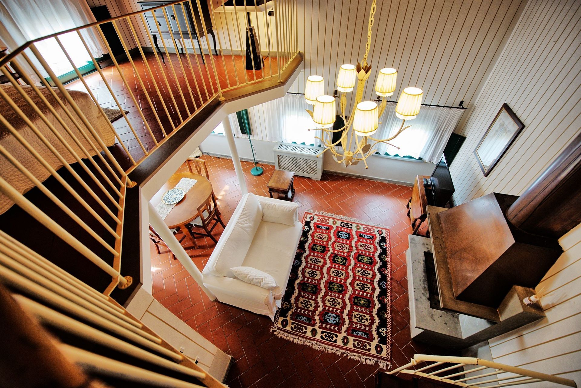 Begane grond: ingang in de woonkamer met eethoek, open haard en kookhoek ( vaatwasser, oven, waterkoker, espresso apparaat.