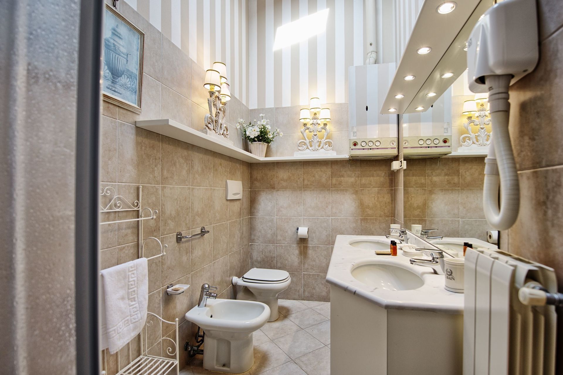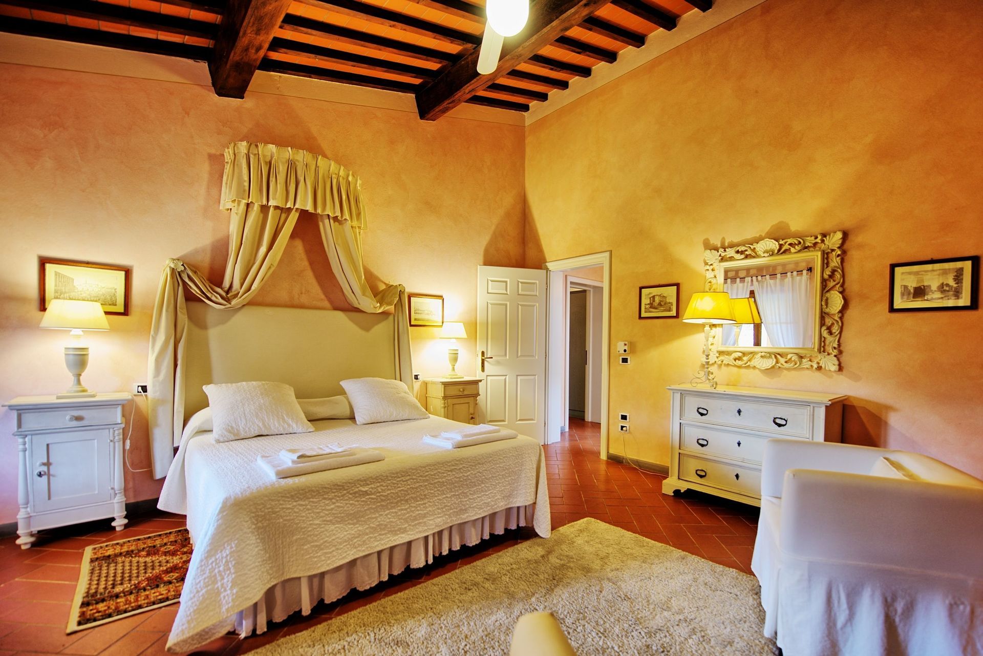 1ste verdieping: woonkamer (met plafond ventilator) met tweepersoonsbedbank en eetruimte met kookhoek (vaatwasser, oven, koelkast, espresso apparaat), slaapkamer met 2 eenpersoonsbedden ( met plafond ventilator), badkamer met badkuip, slaapkamer met tweepersoonsbed (airconditioning).