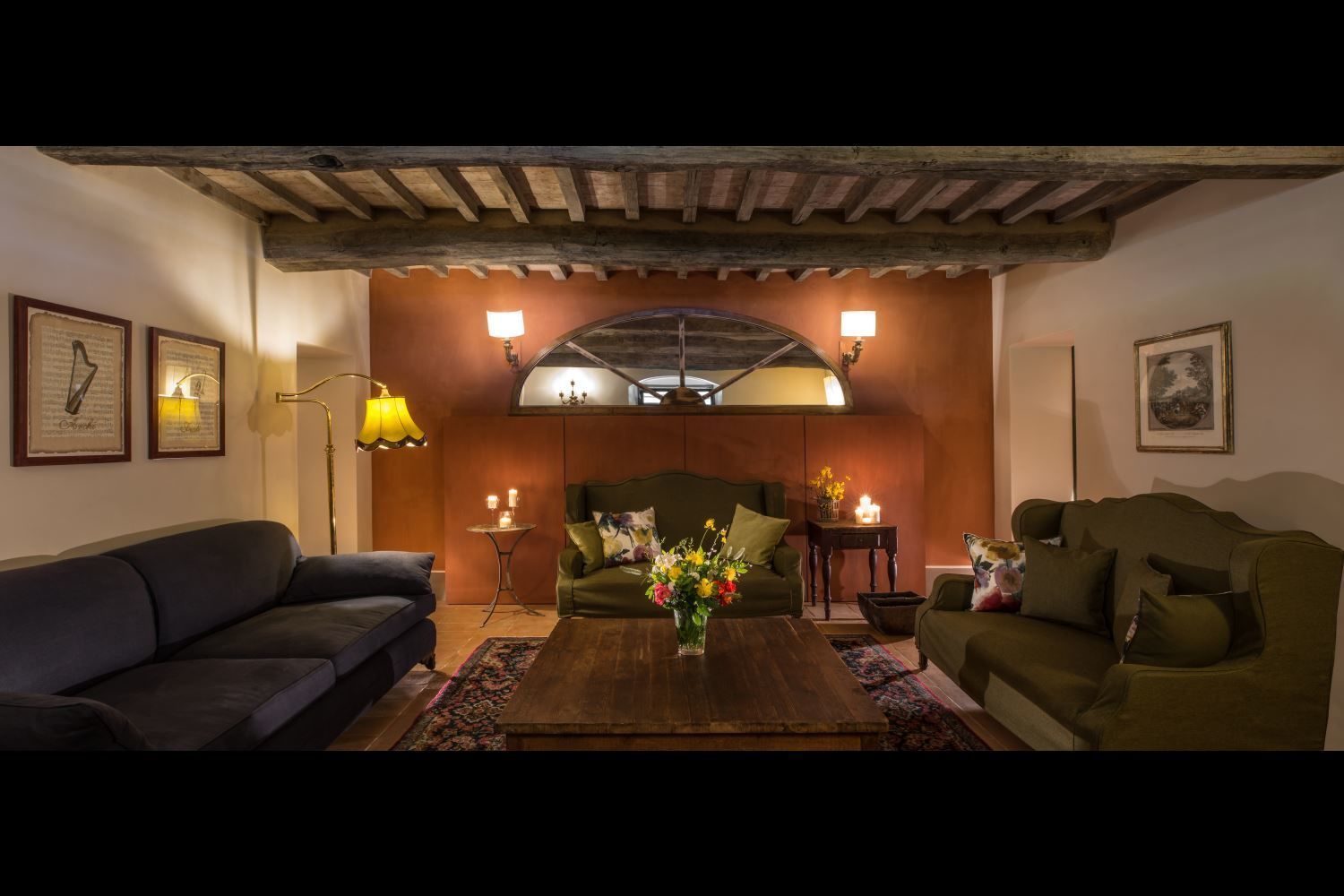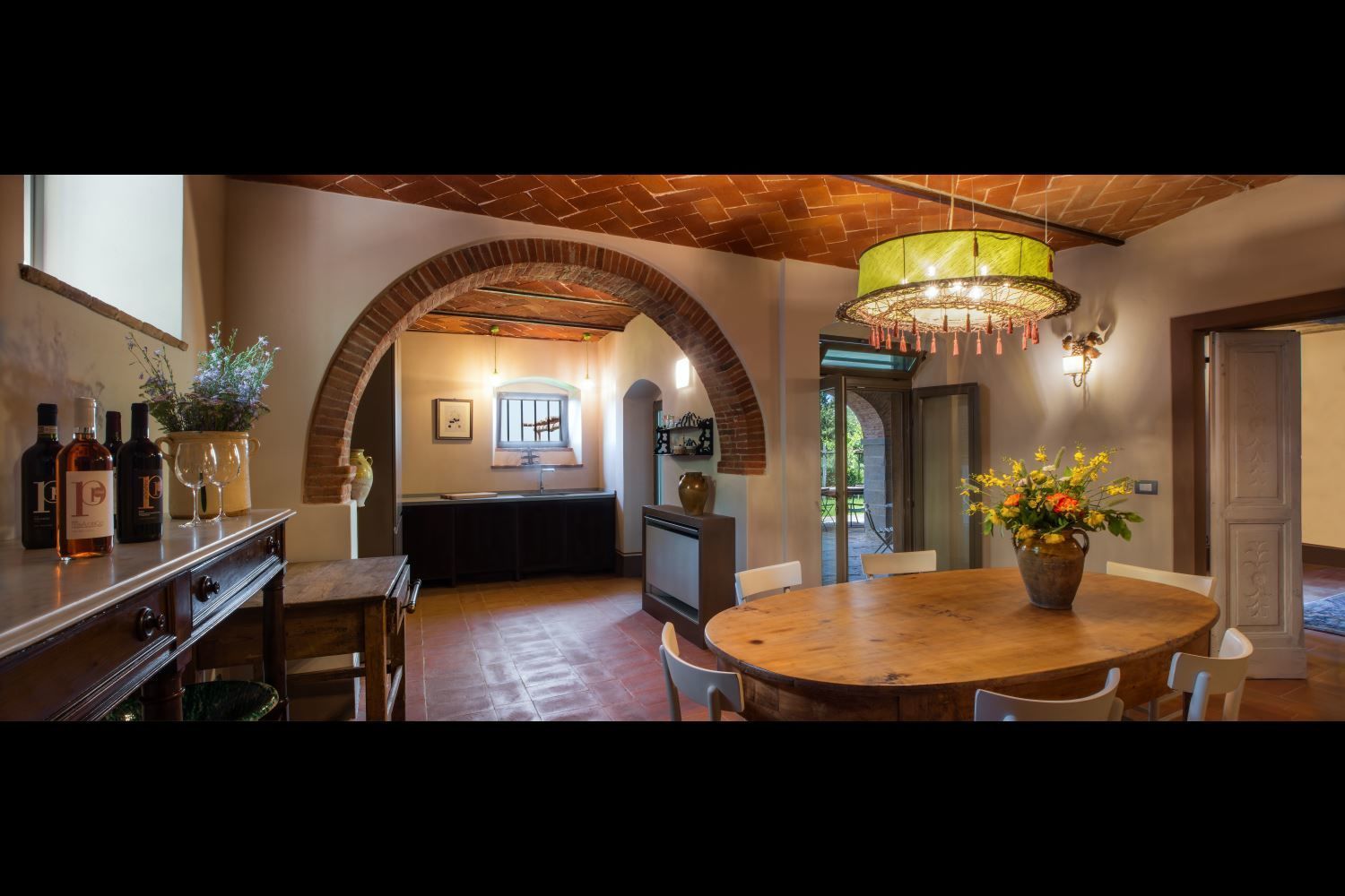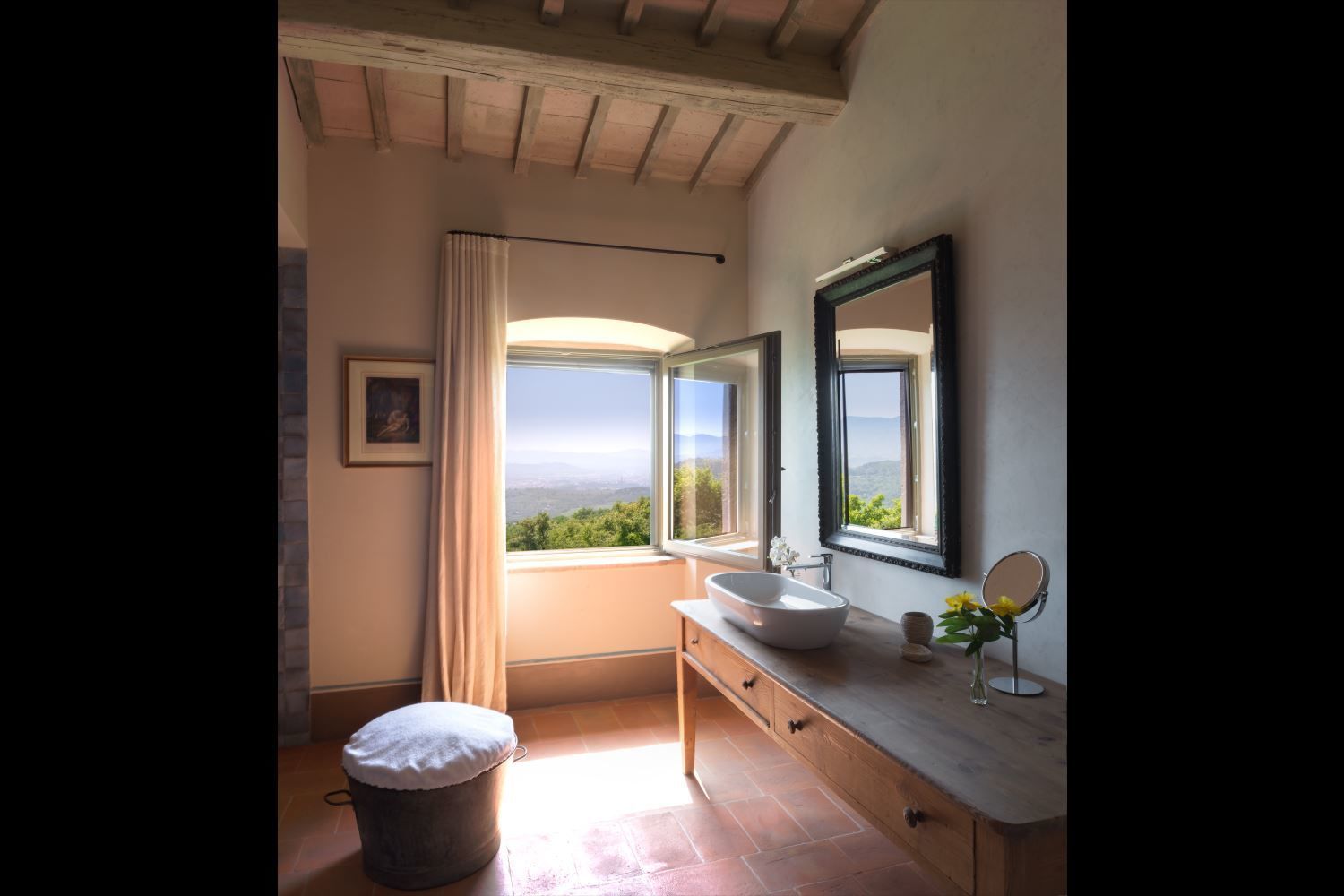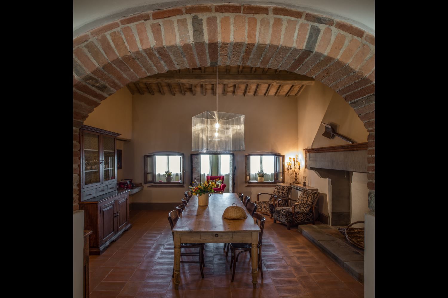 In front of the villa you will find the private garden and on the right-hand side the beautiful swimming pool (size 12x5 m, depth 1.40 m, completely enclosed - open from 01st May to 30th September). From here, every day, you can enjoy a splendid panoramic view over the city of Arezzo and its valleys, a view that becomes even more suggestive at night with the thousands of tiny lights that seem to chase each other. You will reach the centre of Arezzo in less than 10 minutes by car and here you will find all the necessary amenities and services, as well as museums, magnificent churches, cathedrals and monuments to visit.