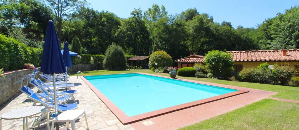 Villa Le Balze overlooks on one side a wooden porch, equipped with table and chairs and perfect for your dinners and evenings in company, and the lush garden where you will have a barbecue and a table tennis. On the other side, the house overlooks the swimming pool area (size 6x12 m, depth 1.40 m - open from 10 May to 15 September), which is completely fenced off and for the exclusive use of guests.