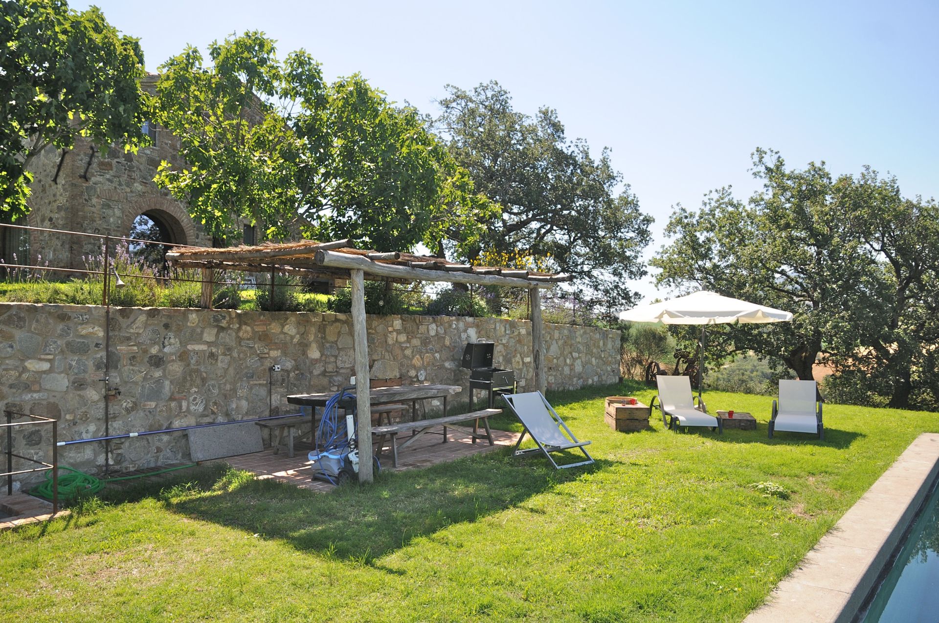 Tuin: zwembad (breedte: 4m, lengte: 12m, max. diepte: 2.5m, min. diepte: 1.5m), douche, WIFI internet, barbecue, dineren in de buitenlucht, eettafel, tuinmeubilair, ligstoel.
