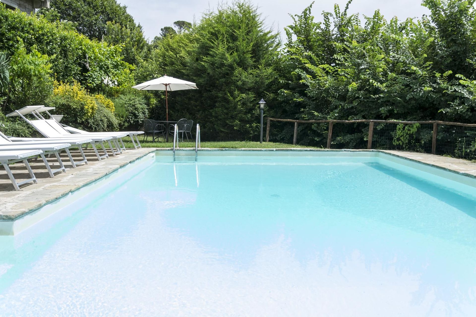Tuin (3000 m2): zwembad (privé, breedte: 8m, lengte: 4m, diepte: 2m, buiten, omheind), barbecue, dineren in de buitenlucht, eettafel (personen: 4), eettafel (personen: 8), tuinmeubilair, terrasmeubilair, tien ligstoelen, omheind, omheind grondstuk.