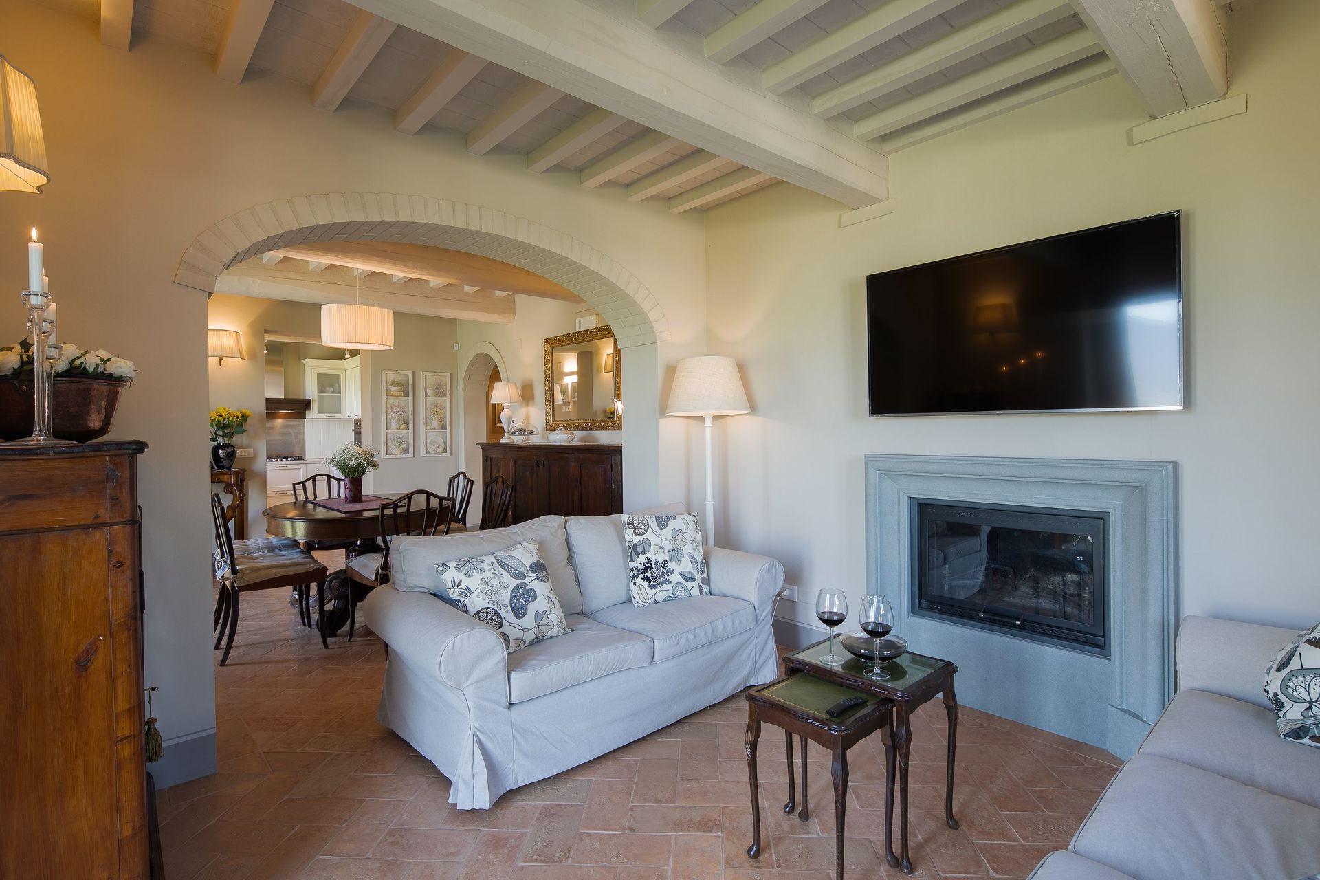 Wanneer u aankomt wordt u welkom geheten door de eigenaar of beheerder en vindt u een mooie, schone en goed onderhouden woning met uitzicht over de heuvels ideaal voor een geweldige vakantie in Toscane. Na een hectische dag winkelen kunt u de tijd doorbrengen met vrienden en familie bij het zwembad, en genieten van een glaasje wijn - een perfecte manier om te ontspannen aan het einde van de dag. Dineren met vrienden en familie is een grote onderdeel van de Toscaanse cultuur. Maak gebruik van de goed uitgeruste keuken om maaltijden te bereiden met lokale producten terwijl u op vakantie bent. De keuken biedt o.a. een koffiezetapparaat, magnetron oven, broodrooster, fornuis en ijskast, en natuurlijk ook voldoende servies en bestek voor minstens acht personen. Eet buiten net zoals een echte Toskaan, een veranda met tuinmeubilair is ideaal om te genieten van het heerlijke eten, de familie en het prachtige Toscaanse klimaat.