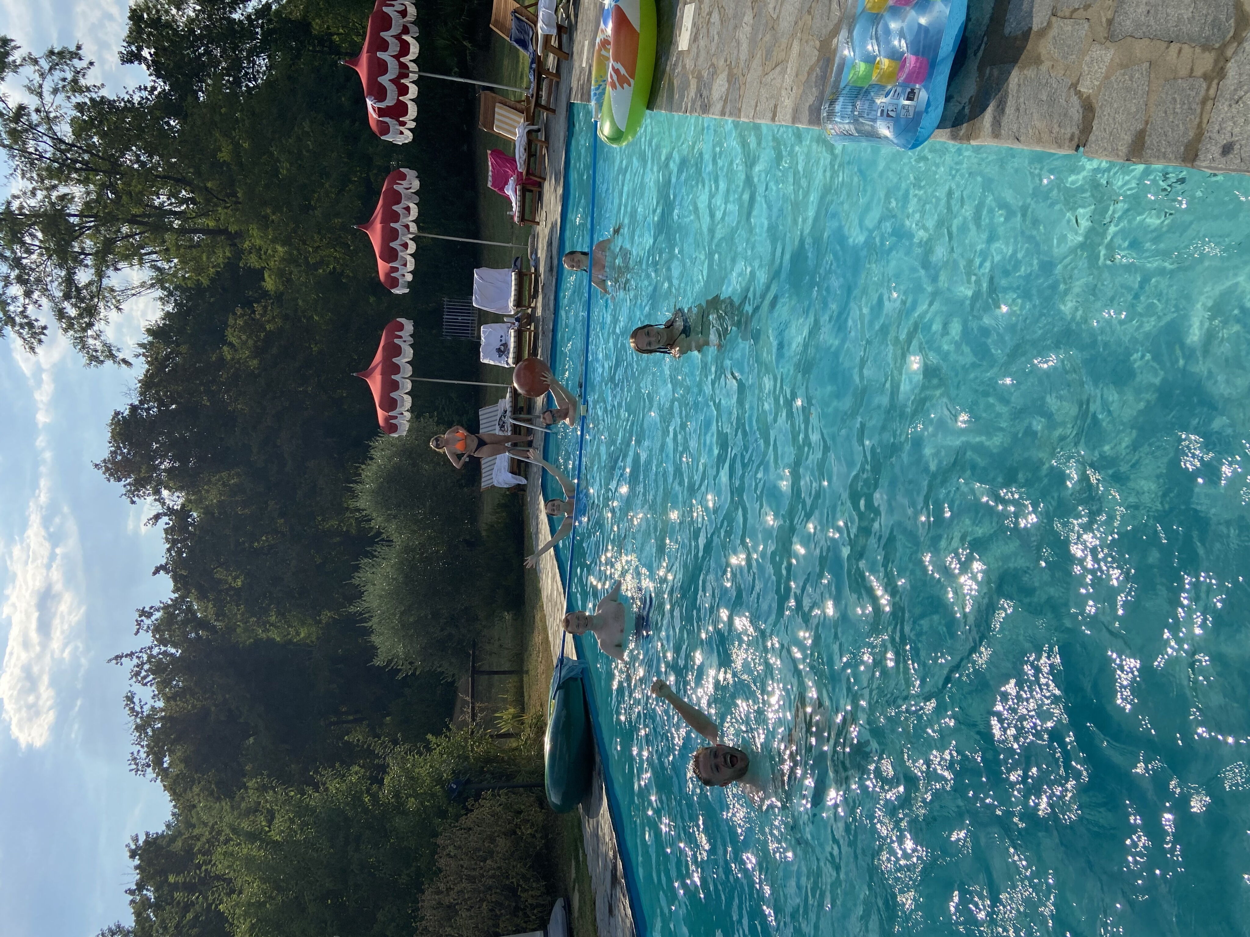 Der Pool ist 12x5 m groß und vom 1. Mai bis zum 30. September geöffnet. Whirlpool. Sitzecken im Freien. Hängematten. Großer Parkplatz.