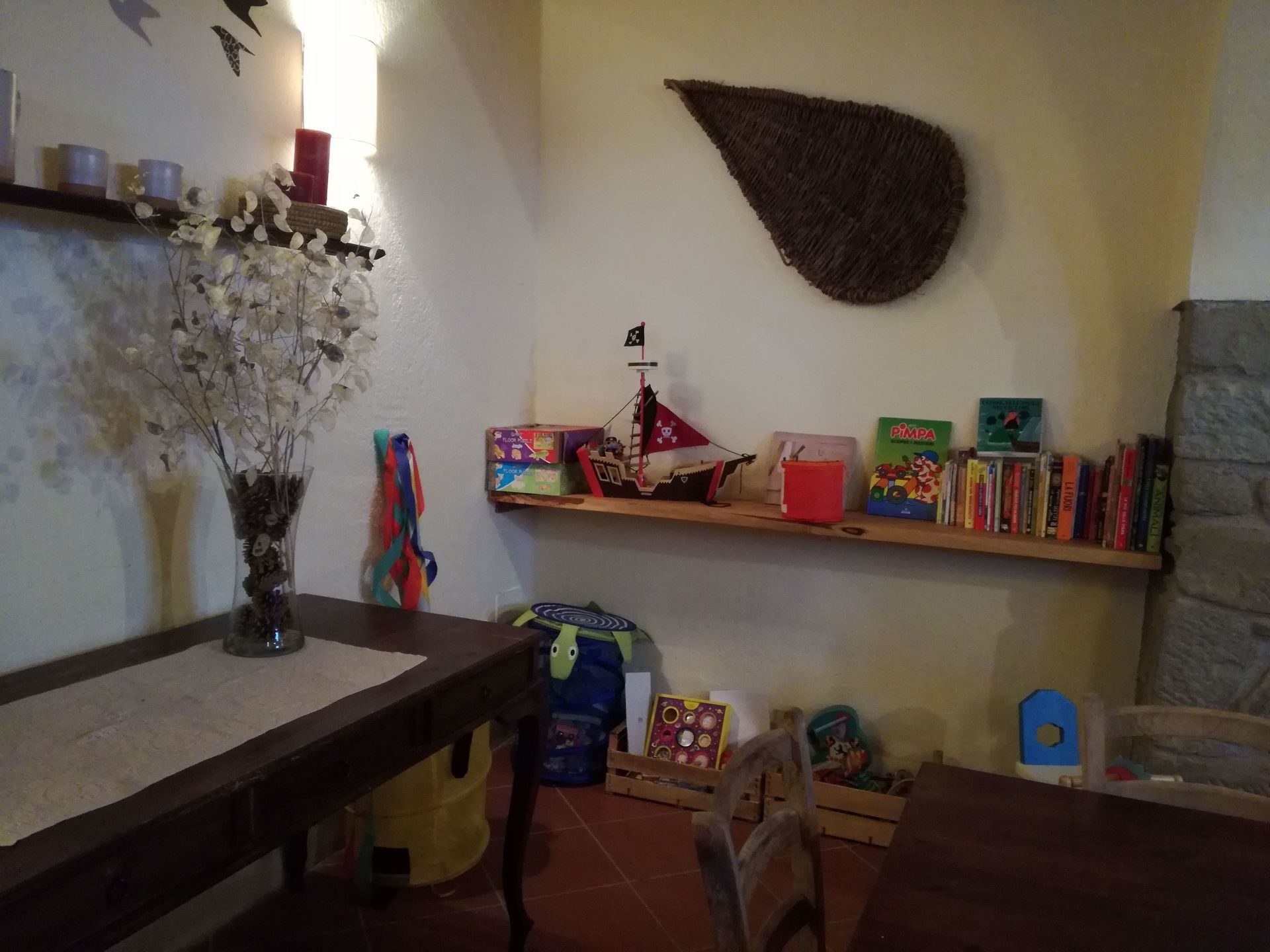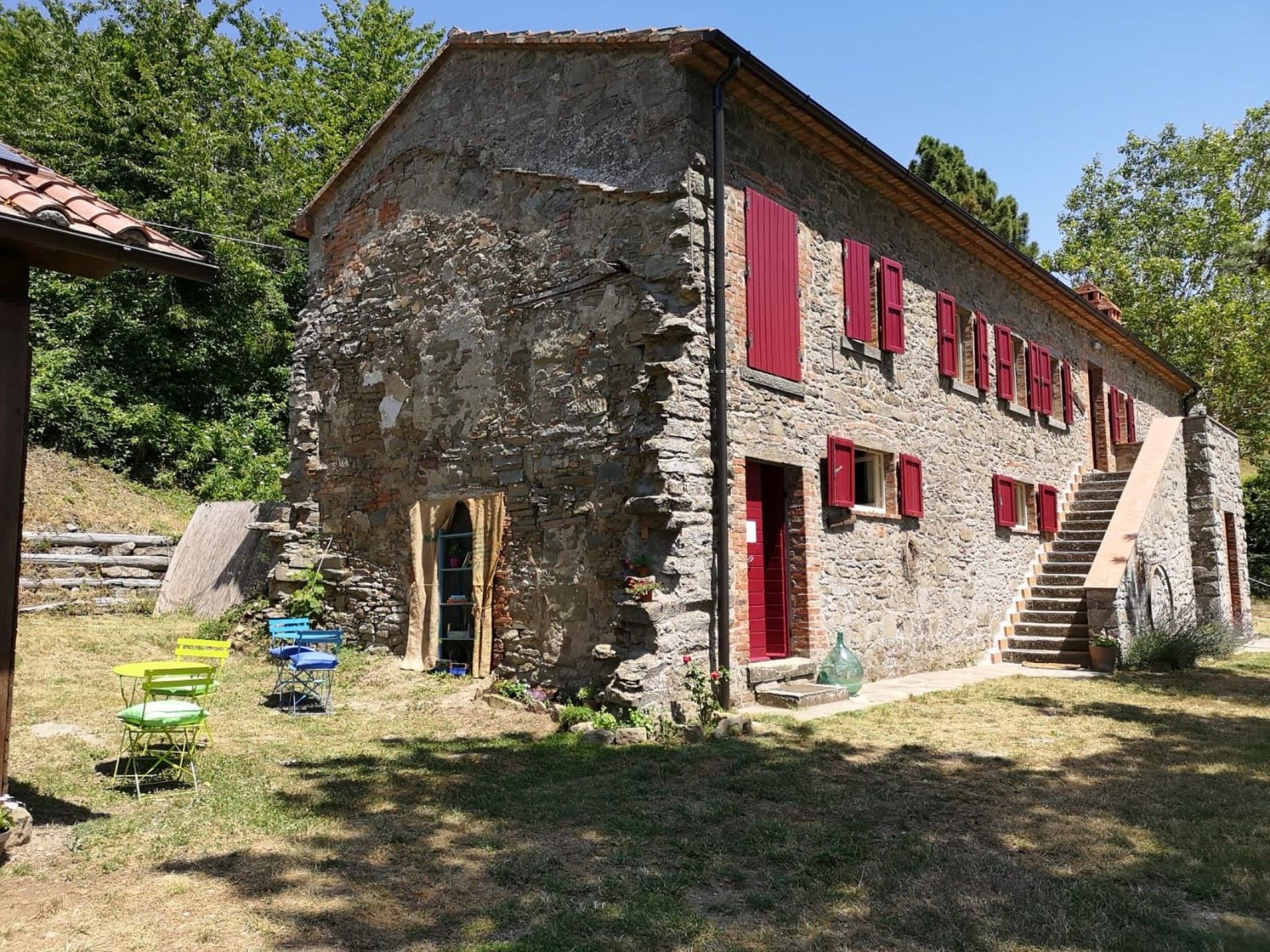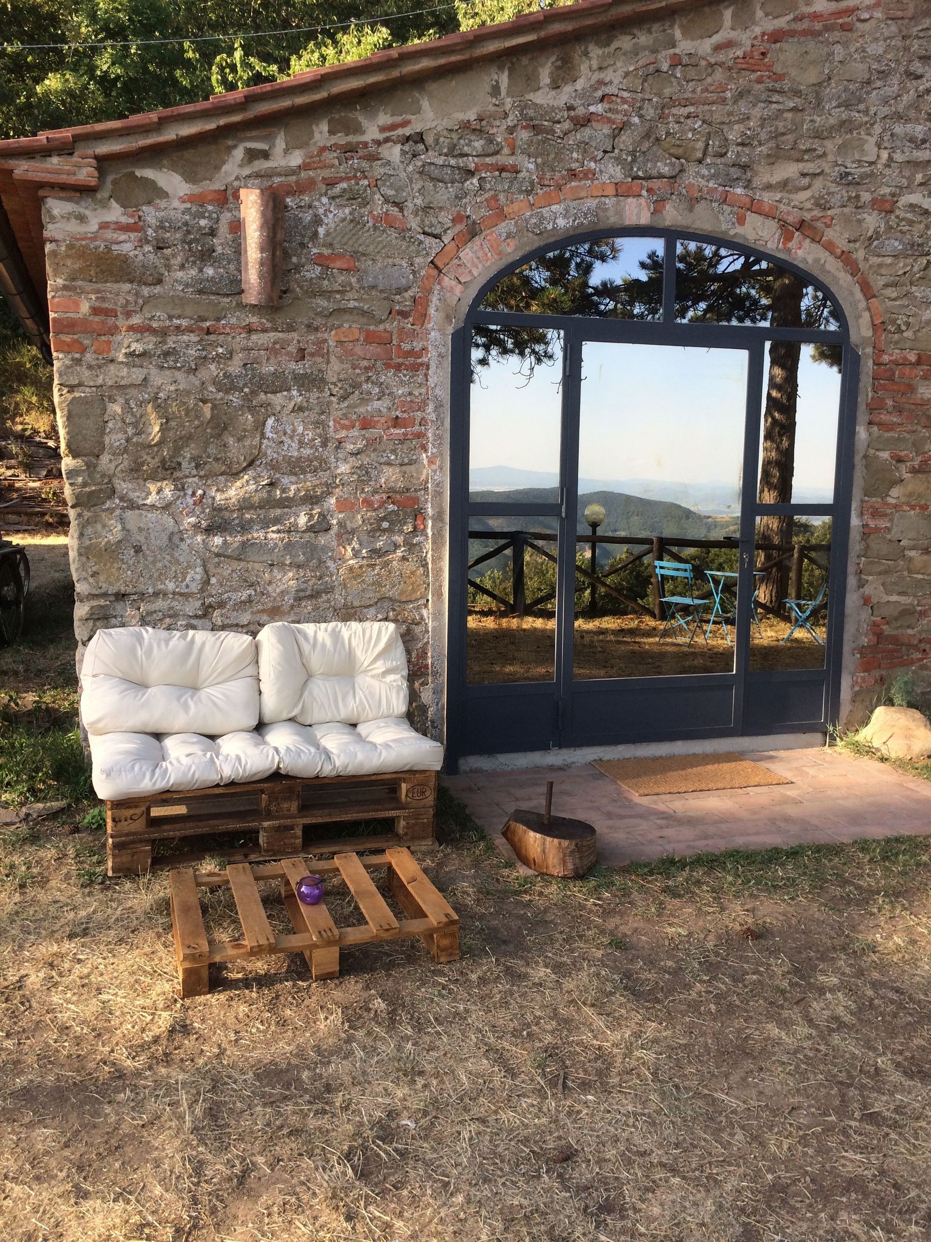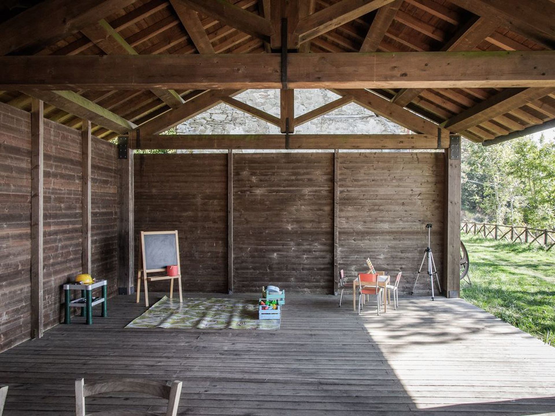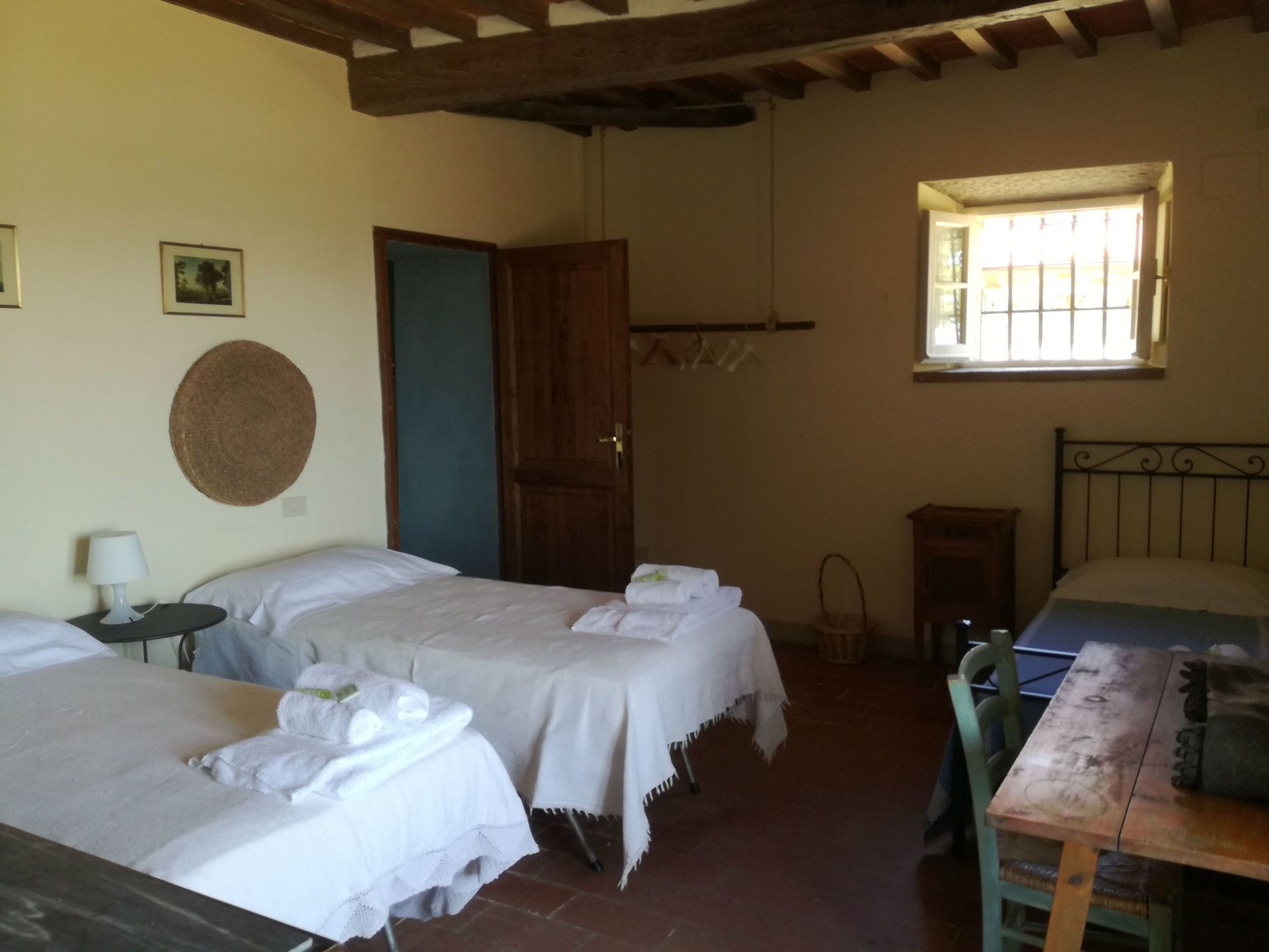 Spacious house with a great open workshop space for kids to play. Great place for a few families with young children. Chickens roost in the coups nearby, kids loved watching them scamper about area. There's good long open area out front under pine trees with hammock, table and chairs and beautiful views of the Tuscan countryside. Kids loved the swimming pool where there's also a great view.
