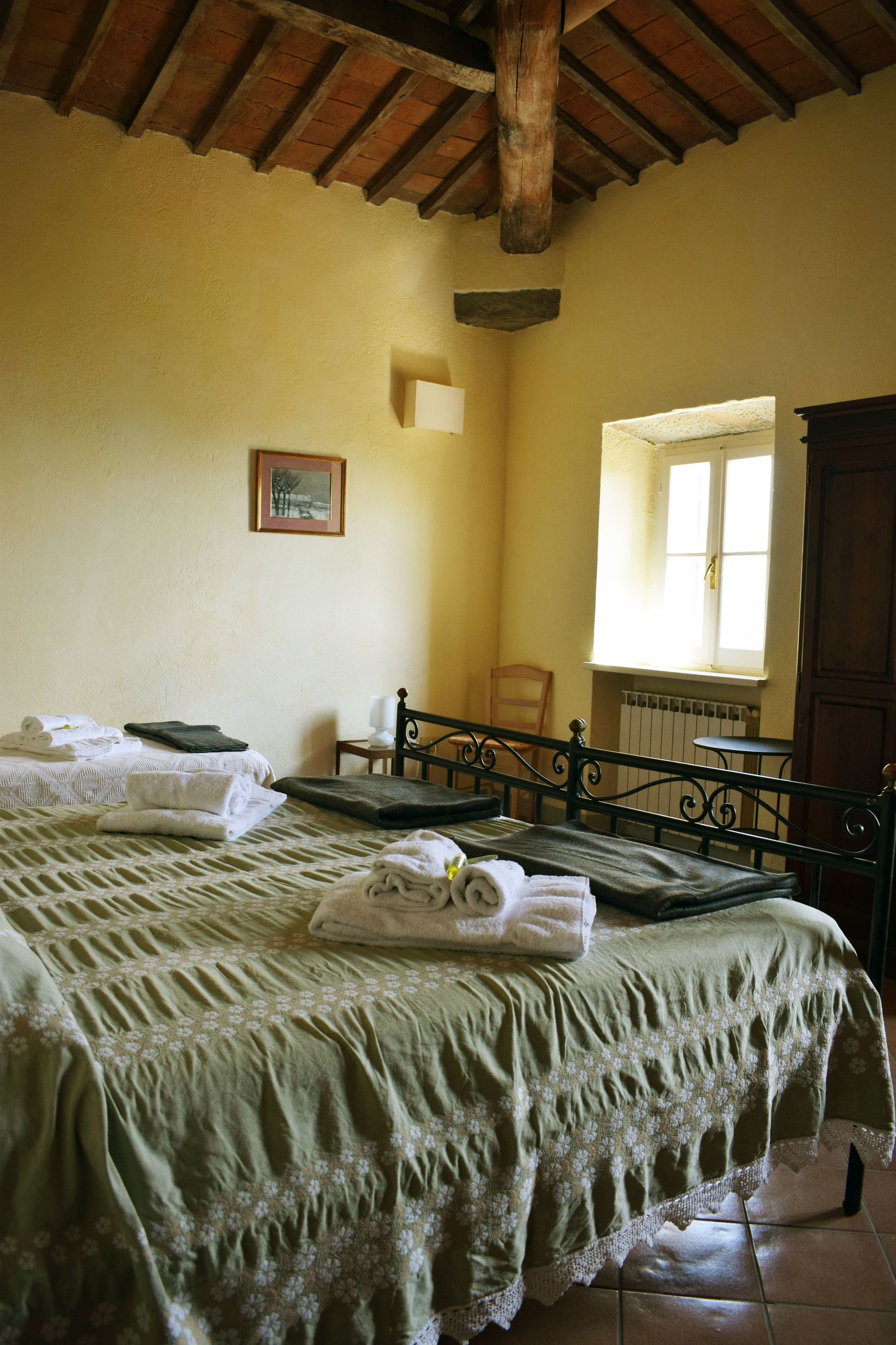 This truly is an 'Off Grid" experience and a great location for those wanting some time to truly chillout as well as experience some fantastic scenery as well as great walking trails. The view from the whole property is truly amazing and the pool allows for some a great break from the Summer heat. There are two good restaurants a short drive away and the town of Cortona is a 25 minute drive away. The train station is about a 30 minute drive with trains to Florence for day trips which take 1 hour and 15 minute. Many other towns are similar drives away.