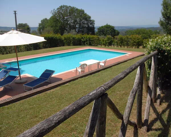Outside there is a beautiful mt 6x12 swimming pool, with a lovely vista on the hills and on the Castle of Montoro. There is a wood oven with a portico and a covered parking for one car. A cellar with wood for the fire places is at disposal of the clients.