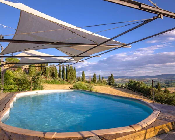 De villa beschikt over een zonnepaneelsysteem dat gedeeltelijk van stroom voorziet. Het pand ligt in Toscane en biedt een panoramisch uitzicht op het omringende landschap.