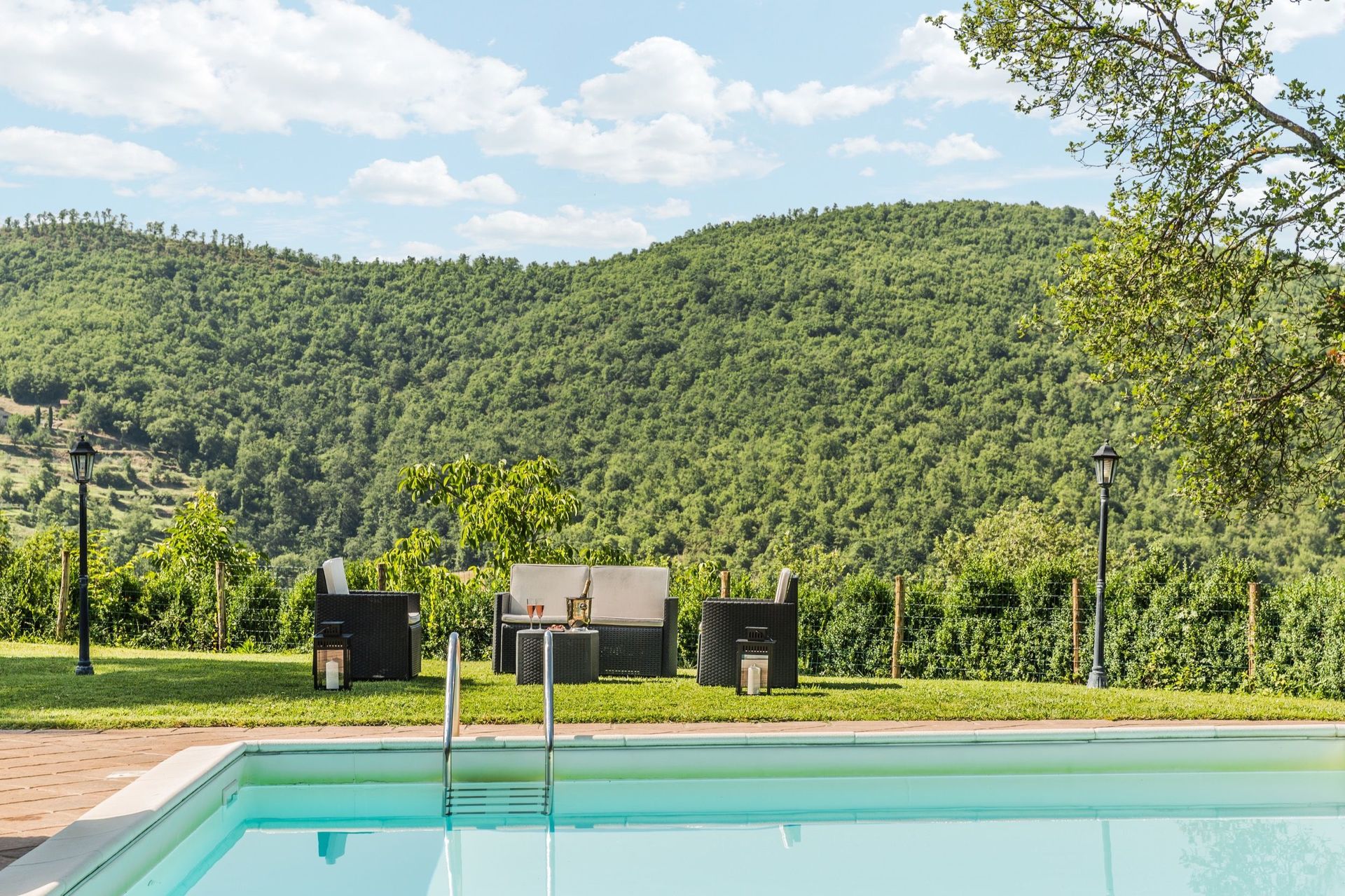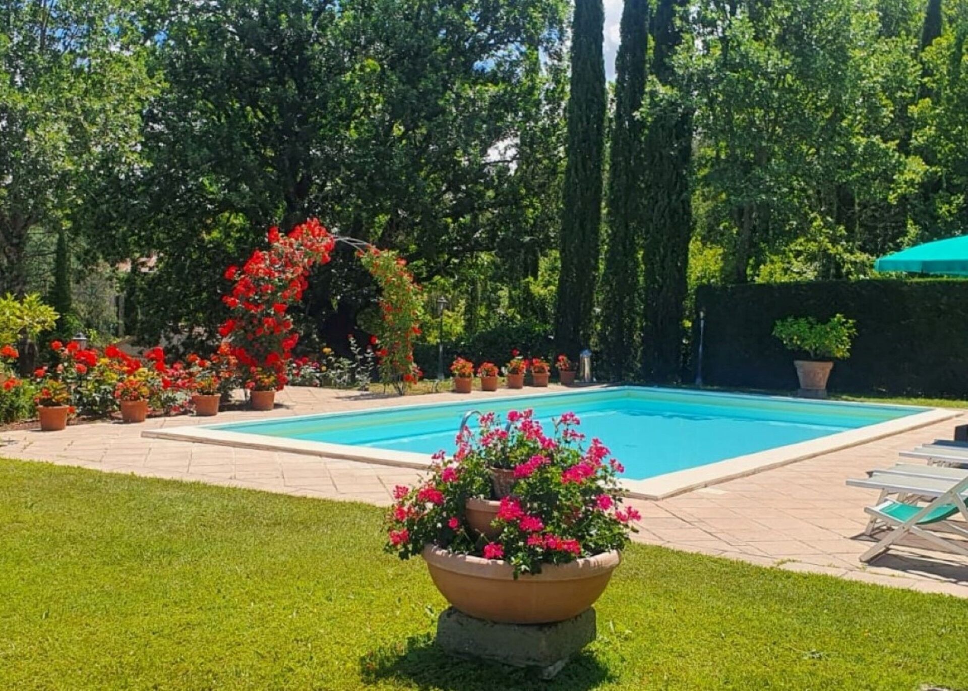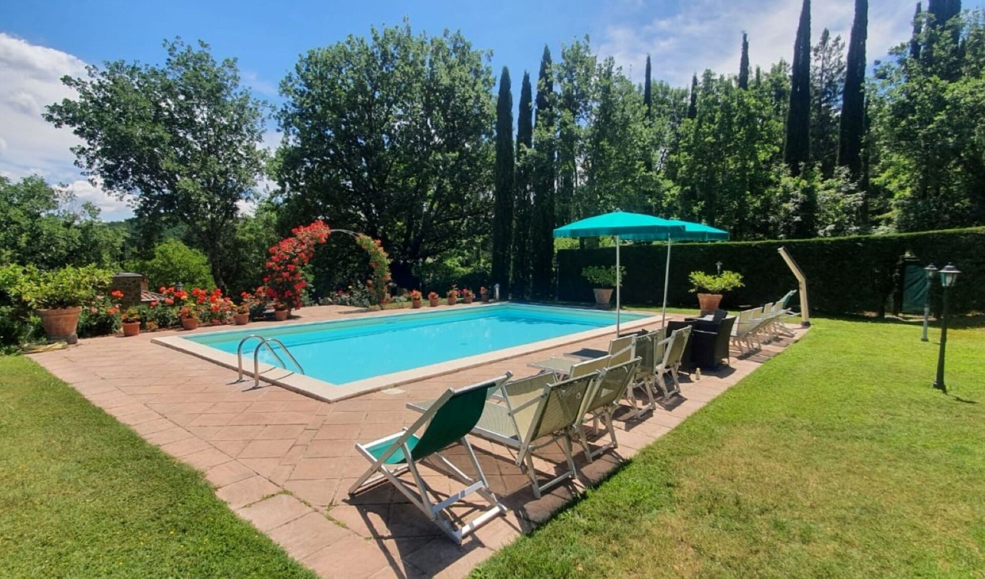Tuin: zwembad (breedte: 6m, lengte: 12m, diepte: 1.5m), douche, WIFI internet, barbecue, dineren in de buitenlucht, eettafel (personen: 10), gazebo, tuinmeubilair, tien ligstoelen, omheind, omheind grondstuk.