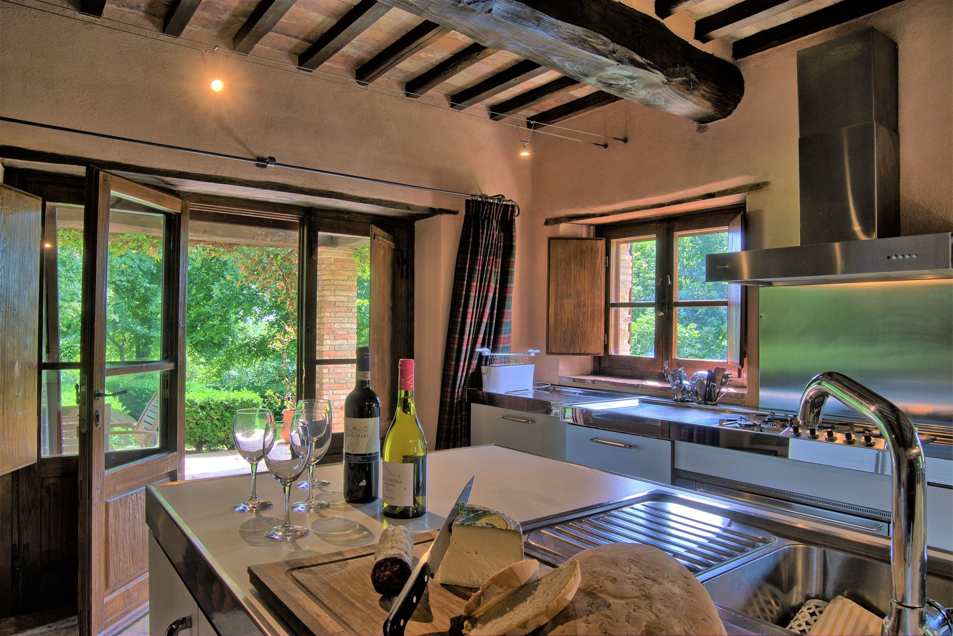 Bij aankomst te Villa Colle Delle Forche vindt u een mooie, schone en goed onderhouden woning met uitzicht over de heuvels perfect voor een rustige vakantie in Toscane. Na een hectische dag toeren kunt u de tijd doorbrengen met vrienden en familie bij het zwembad, en genieten van een glaasje wijn - een perfecte manier om te uitrusten aan het einde van de dag. Ook zijn er buiten beschikbaar een barbecue en terras. Als u van koken houdt is er een goed uitgeruste keuken met o.a. magnetron oven, fornuis en ijskast en natuurlijk voldoende servies en bestek voor tot acht personen. Als u liever buiten eet is er een patio waar u van het weer kan genieten terwijl u buiten eet.