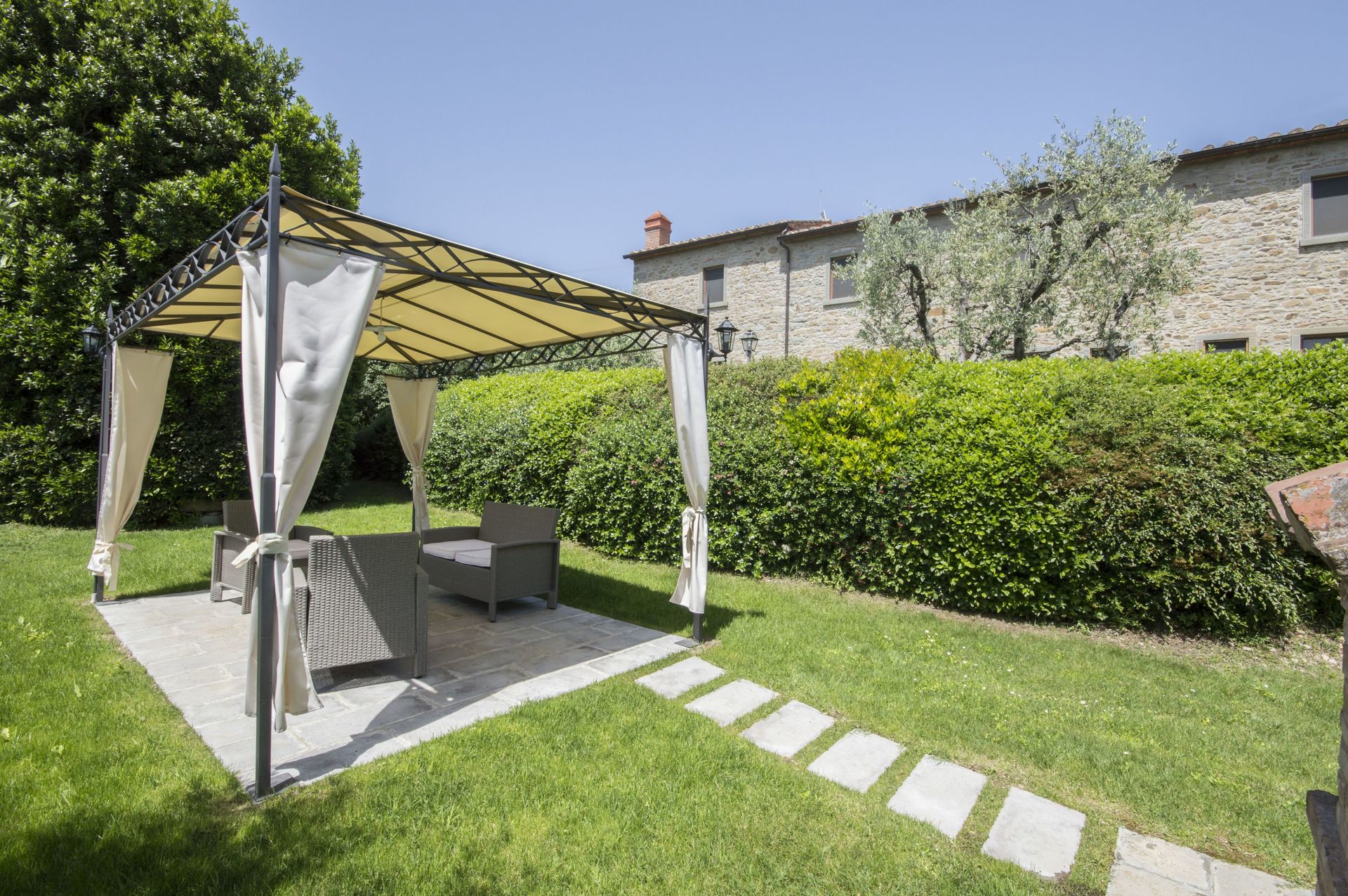 Parkeerplaats: op het domein, poort, parkeerplaats. Villa il Sasso beslaat 2 verdiepingen die met elkaar verbonden zijn door een externe stenen trap.