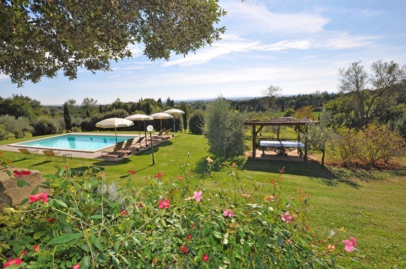 Stel je eens voor: een mooie villa in een kleine stad met het weelderige groen van bomen en uitzicht over de wijngaarden en glooiende heuvels van het Toscaanse platteland rondom, een vooringang die uitkomt op een kleine binnenplaats met bloemen en bomen, klimbloemen en ranken die de zonnig gele gevel van de villa opkronkelen, groene ramen met luiken, een romantisch balkon op de eerste verdieping boven de ingang en een terracotta dak om het geheel af te maken. Dit is de dromerige eerste ontmoeting die gasten hebben wanneer ze Villa Toppani Del Sodo bereiken en dit zet de juiste toon voor je heerlijke vakantie hier.