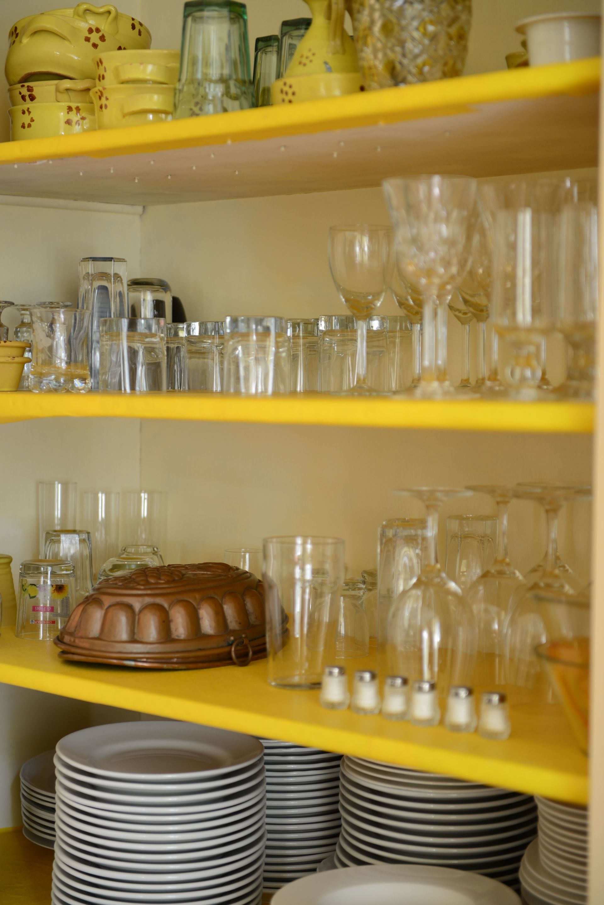 Eetkamer: eettafel, uitgang naar de tuin.