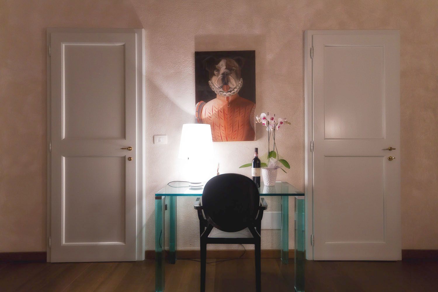 Slaapkamer met badkamer 1: king size bed, WIFI internet, airconditioning, wastafel, toilet , bidet, bad, uitgang naar de tuin.