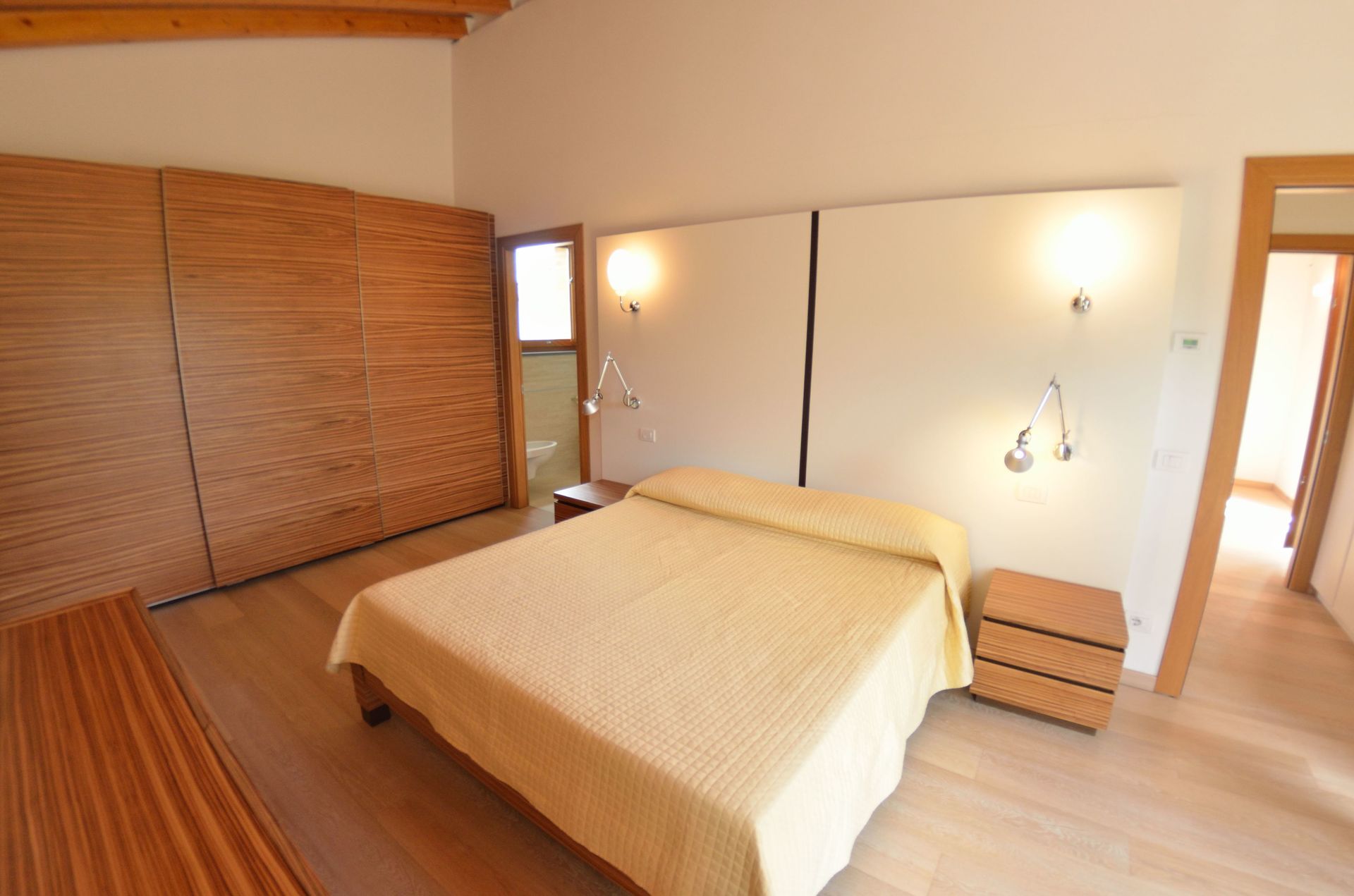 Slaapkamer met badkamer 2: tweepersoonsbed, wastafel, toilet , douche.