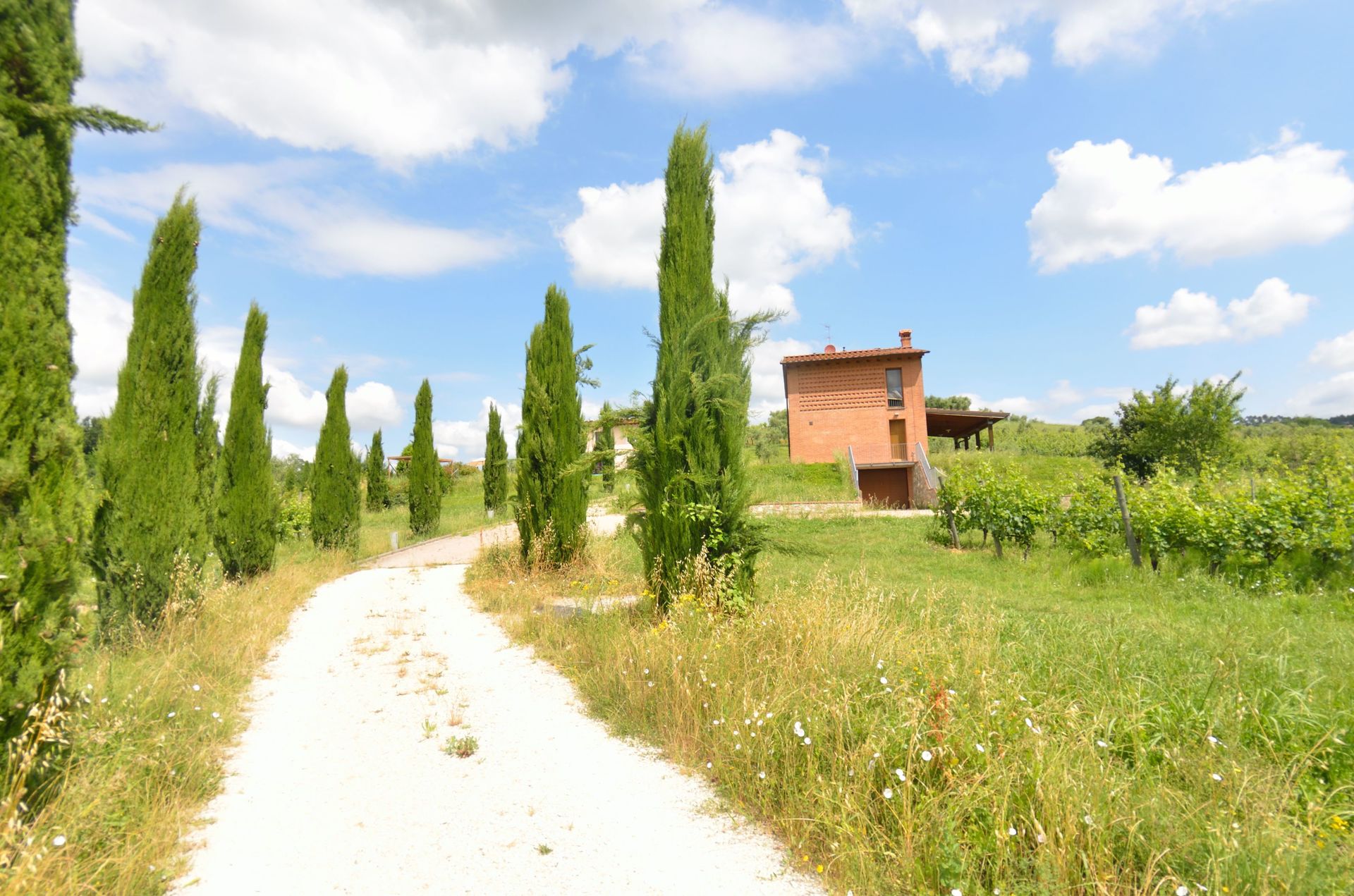 grosses Haus in toskaner Styl zwischen Olivenbäumen und Weinreben