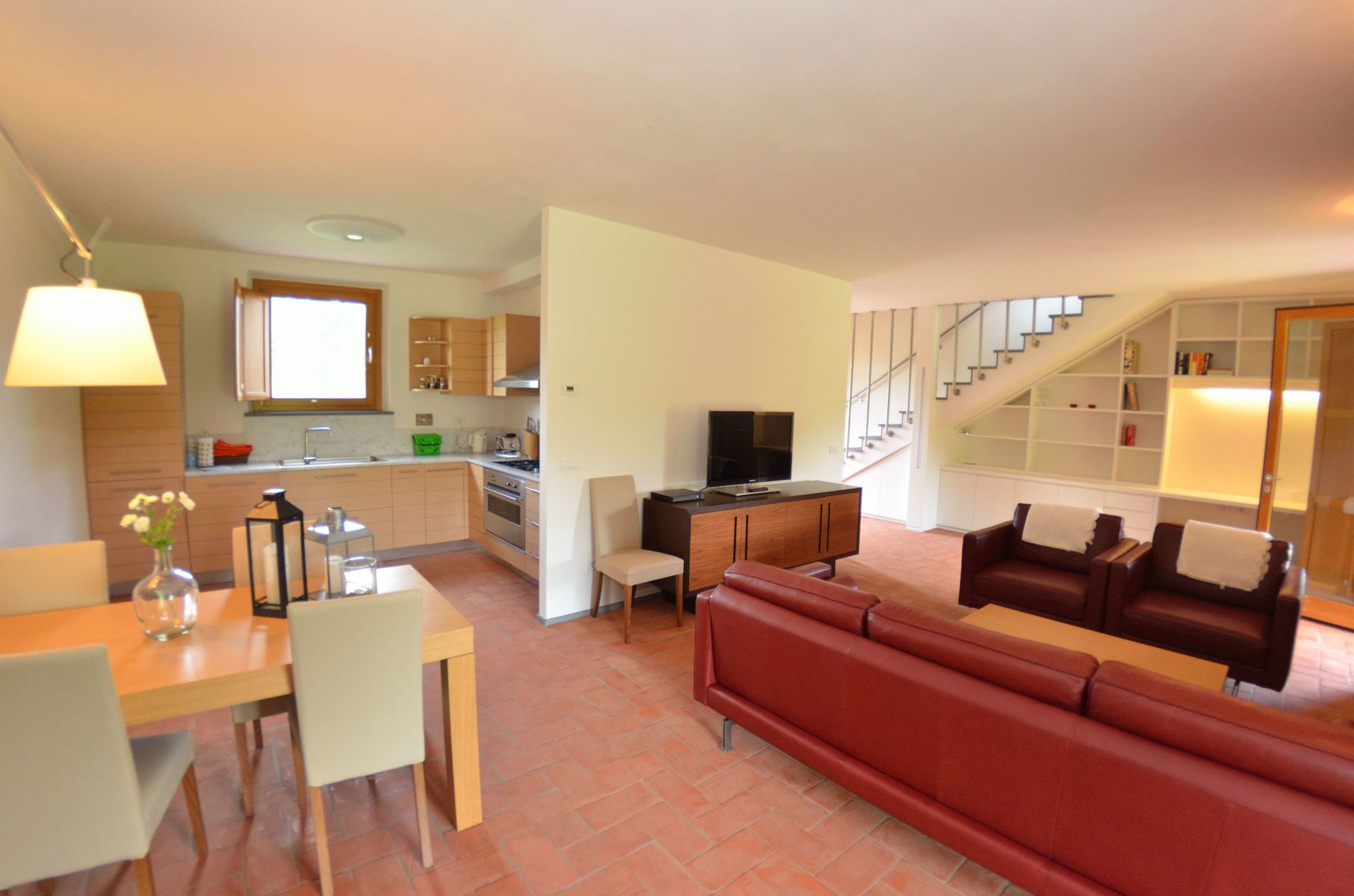 Wanneer u aankomt wordt u welkom geheten door de eigenaar of beheerder en vindt u een prachtige, schone en goed onderhouden woning met uitzicht over de heuvels perfect voor een rustige vakantie in Toscane. Na een drukke dag winkelen kunt u de tijd doorbrengen met vrienden en familie bij het zwembad, en genieten van een glaasje wijn - een perfecte manier om te ontspannen aan het einde van de dag. Op het terrein is er voor uw genoegen een terras en barbecue. Eten met vrienden en familie is een grote onderdeel van de Toscaanse cultuur. Maak gebruik van de keuken om maaltijden te bereiden met lokale producten terwijl u op vakantie bent. De keuken biedt o.a. een koffiezetapparaat, magnetron oven, broodrooster, fornuis en ijskast, en natuurlijk ook voldoende servies en bestek voor minstens vijf personen. Eet buiten net zoals een echte Toskaan, een veranda met tuinmeubilair is perfect om te genieten van het heerlijke eten, de familie en het fraaie Toscaanse klimaat.