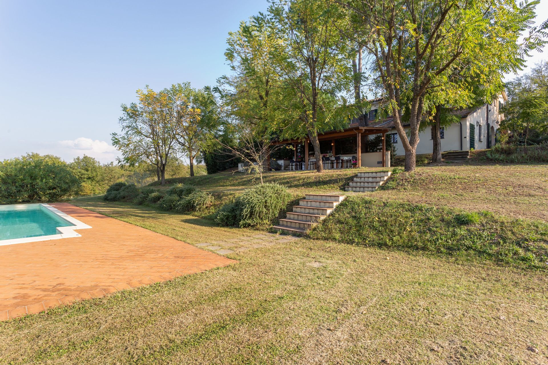 [English translation courtesy of Easy Reserve] Casa La Rotta is a beautiful Idillic place. You will not notice this when you drive there, but once there you are surprised. This is due to the vegetation that shields the house from the roads and the surrounding area. The house is large, cool yet romantic and cozy. Advantages are the two beautiful sheltered terraces and the fairly large swimming pool. The owners are cordial, helpful and they speak English. However, you must bear in mind that if you are with more than 6 people, part of the group is accommodated in the annexe, but that can also be an advantage. The sanitary facilities can be modernized here and there to increase comfort. All known places in the area are very easily accessible from this property and that certainly also applies to the airport of Pisa at approx. 20 minutes.Zou u deze woning aanbevelen aan een vriend? Ja