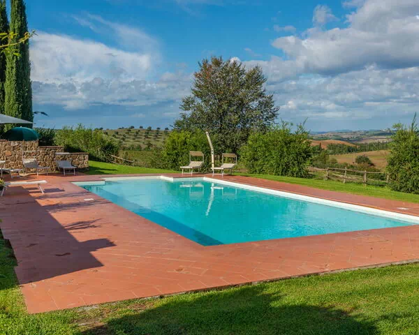 De buitenruimtes van dit pand zijn even royaal als mooi, en nodigen gasten uit om op elk moment van de dag optimaal gebruik te maken van het Toscaanse platteland. Het privéterrein beslaat 1.500 m2 en omvat een goed onderhouden tuin, die, hoewel niet omheind, een natuurlijke en open ruimtevoel biedt omlijst door het omringende landschap. Het middelpunt van het buitengebied is het indrukwekkende zwembad van 14 x 7 m met een diepte variërend van 90 tot 140 cm en uitgerust met een interne trap voor gemakkelijke toegang. Het zwembad is seizoensgebonden beschikbaar van 30 mei tot 1 oktober. Een ruim terras grenst aan het buitengebied en is voorzien van tuinmeubilair, wat een ideale plek biedt voor dineren buiten en luie middagen in de zon. Een barbecue is ook beschikbaar, perfect voor het bereiden van maaltijden buiten terwijl u geniet van het panoramische uitzicht vanaf deze heuveltoppositie.