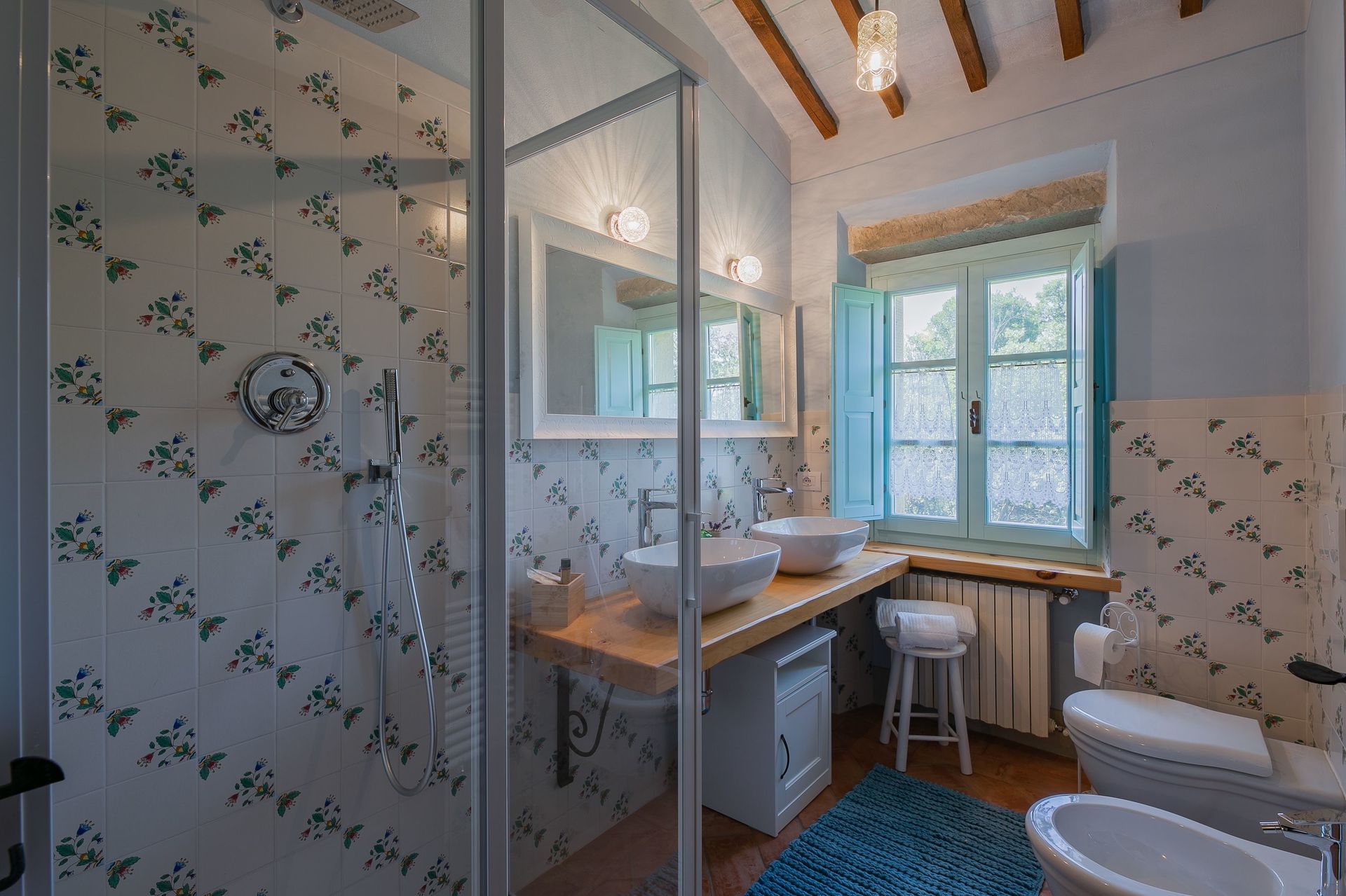 Badkamer 2 (9 m2): dubbele wastafel, toilet , bidet, douche, haardroger, WIFI internet, hor.