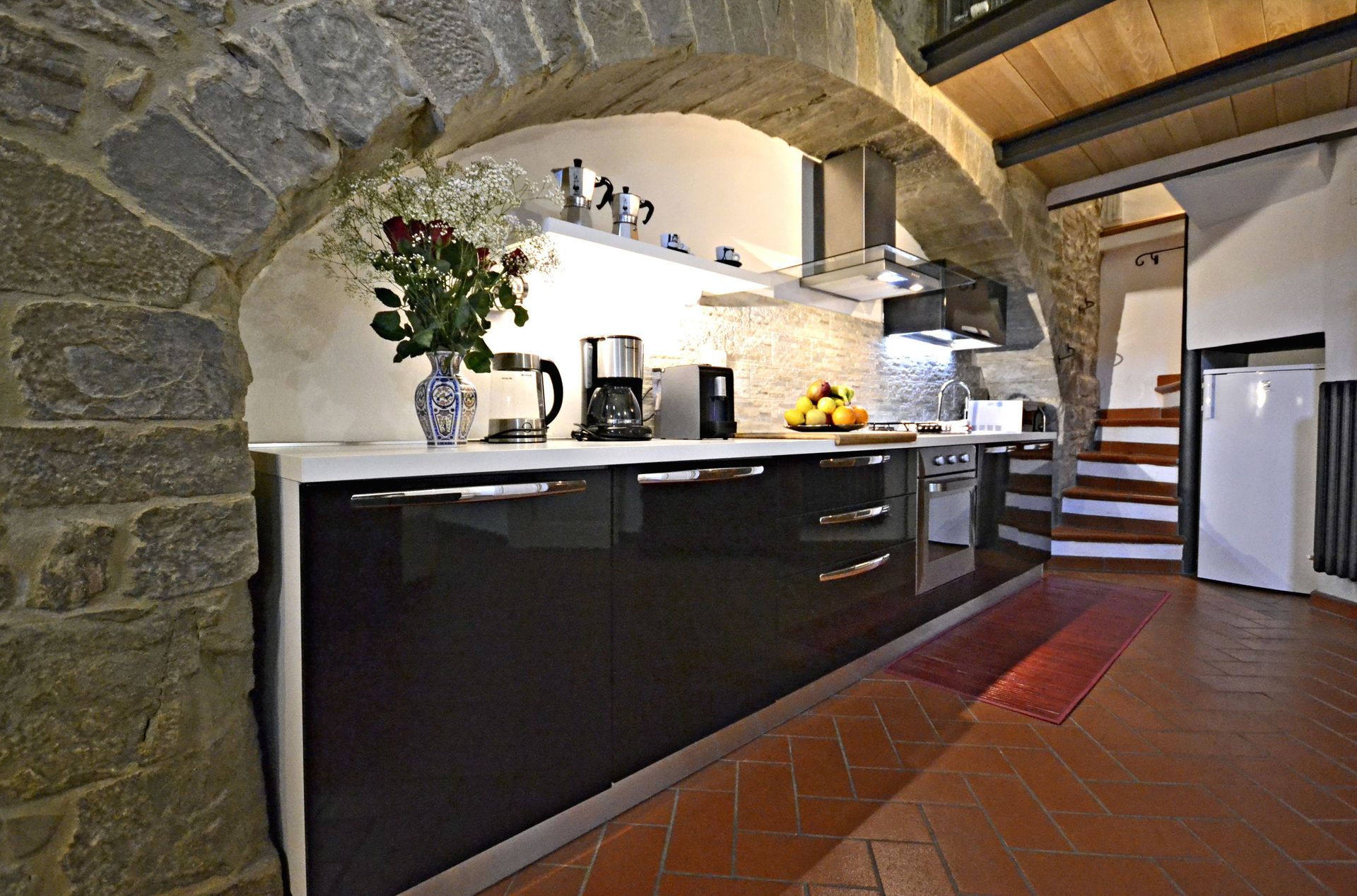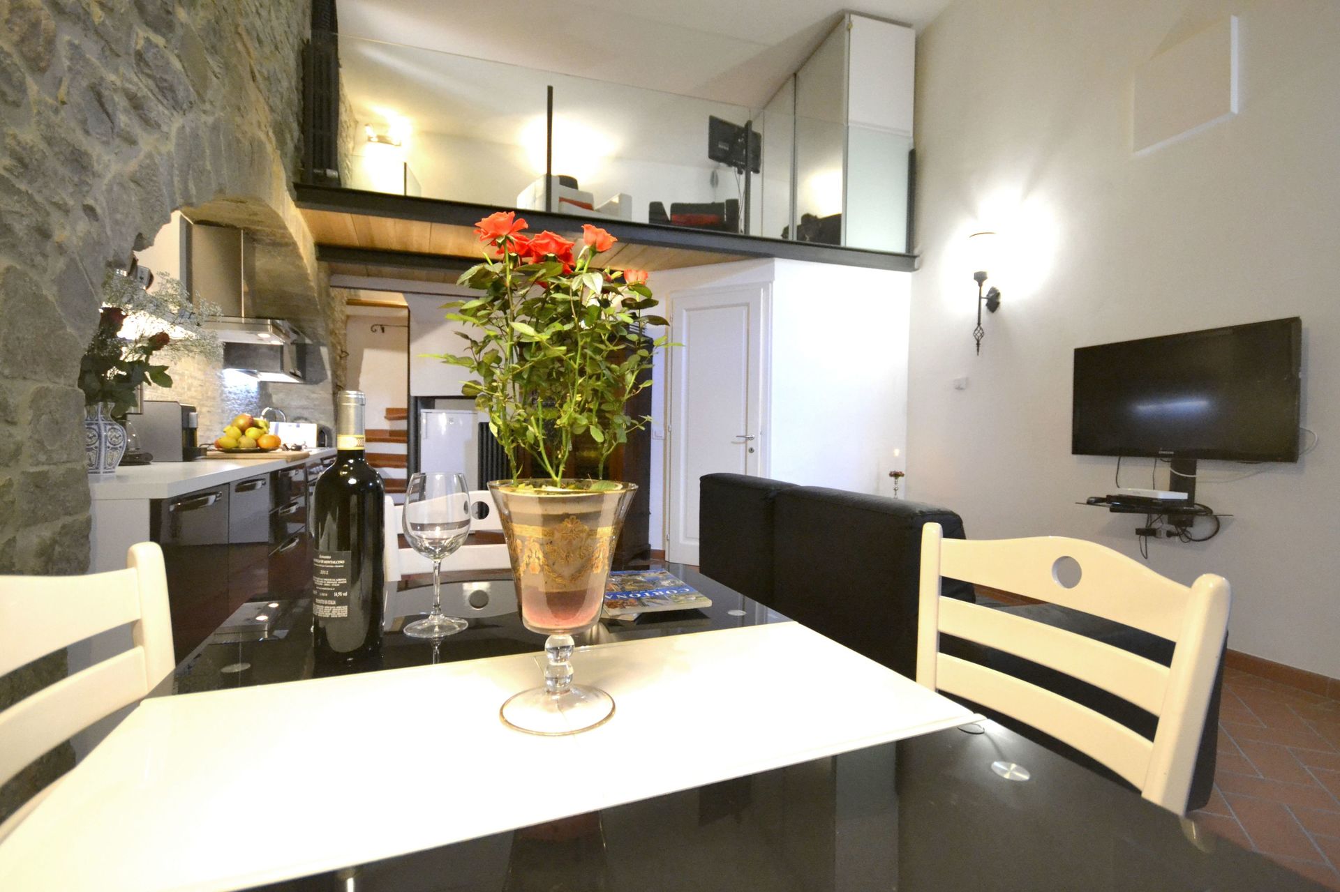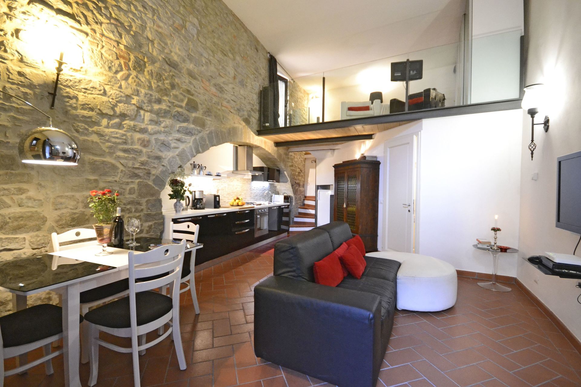 Zodra u aankomt vindt u een fraaie, schone en goed onderhouden woning ideaal voor een rustige vakantie in Toscane. Een groot voordeel van het huren van een huis, in plaats van meerdere hotelkamers, is de mogelijkheid om samen met familie en vrienden te ontspannen na een drukke dag van rondkijken en toeren. Geniet samen van een maaltijd met een glas lokale wijn om de dag af te sluiten. Als u van koken houdt is er een goed uitgeruste keuken met o.a. koffiezetapparaat, magnetron oven, broodrooster, fornuis en ijskast en natuurlijk voldoende servies en bestek voor tot vier personen.