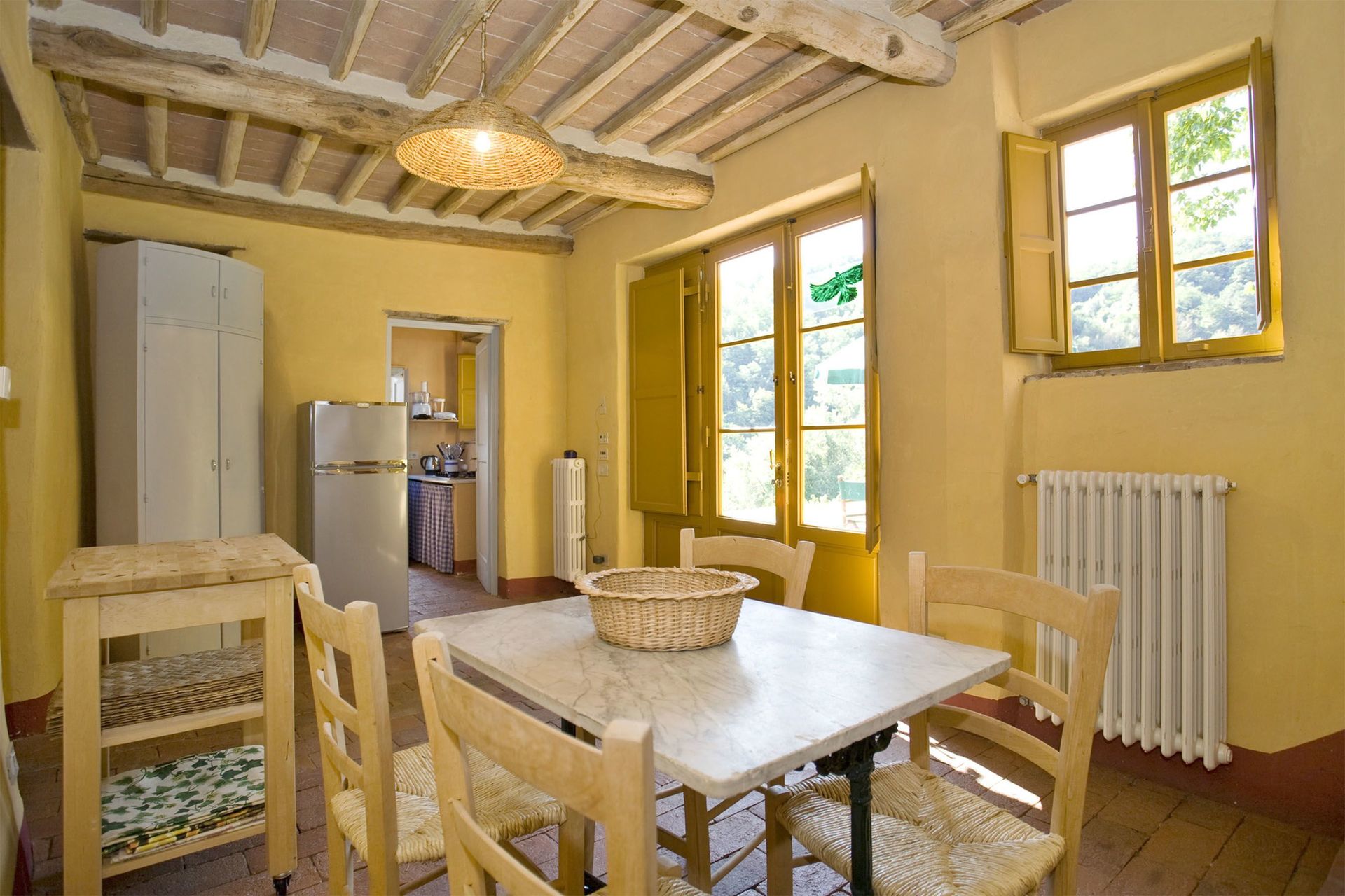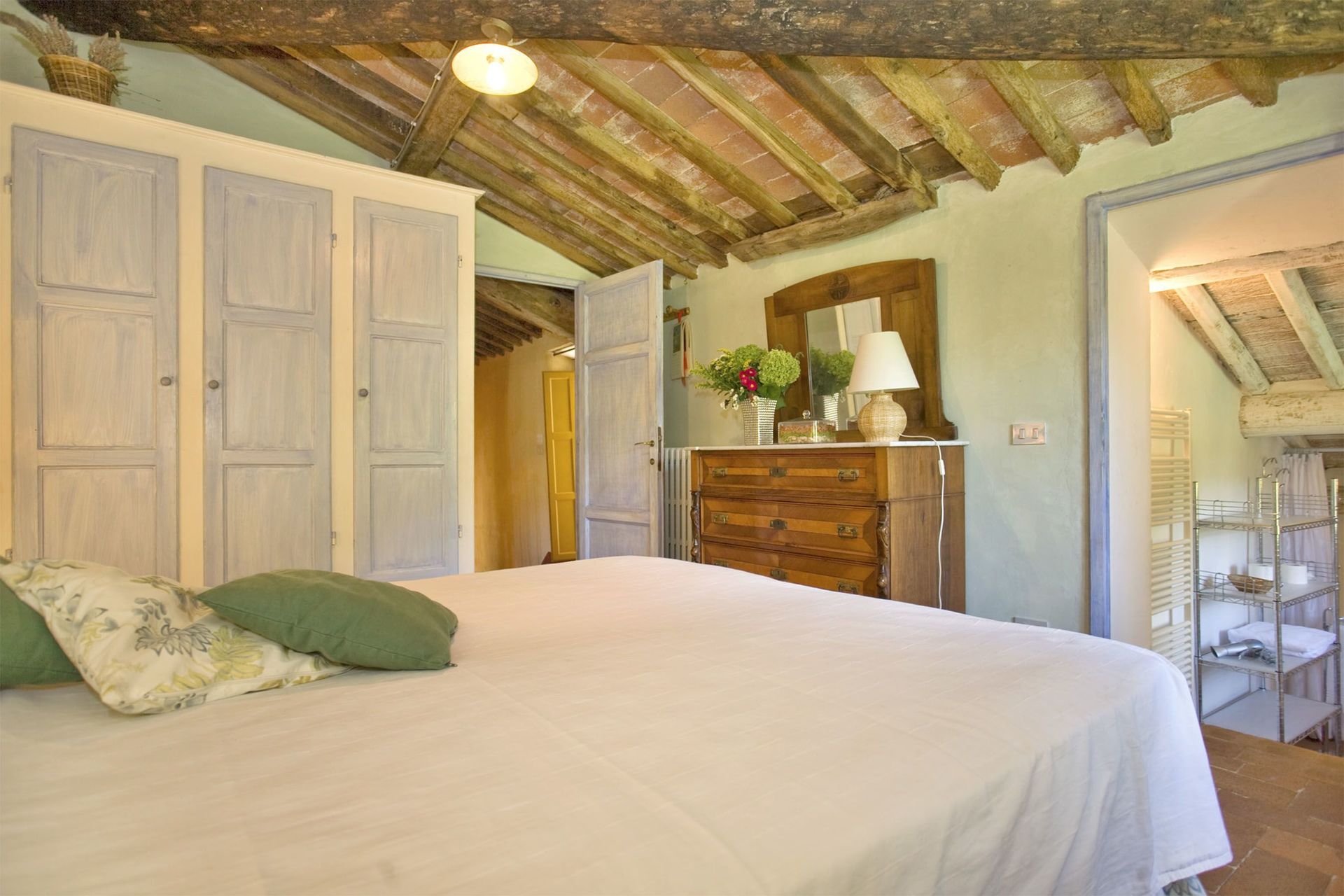 Wanneer u aankomt vindt u een fraaie, schone en goed onderhouden woning met uitzicht over de heuvels ideaal voor een rustige vakantie in Toscane. Voor uw vermaak vindt u een privé zwembad waar u kunt uitrusten terwijl u geniet van een heerlijk koel drankje na een drukke dag winkelen. Op het terrein is er voor uw genoegen een barbecue en terras. Eten met vrienden en familie is een grote onderdeel van de Toscaanse cultuur. Maak gebruik van de goed uitgeruste keuken om maaltijden te bereiden met lokale producten terwijl u op vakantie bent. De keuken biedt o.a. een koffiezetapparaat, magnetron oven, broodrooster, fornuis en ijskast, en natuurlijk ook voldoende servies en bestek voor minstens tien personen. Eet buiten net zoals een echte Toskaan, een patio met tuinmeubilair is ideaal om te genieten van het heerlijke eten, de familie en het mooie Toscaanse klimaat.
