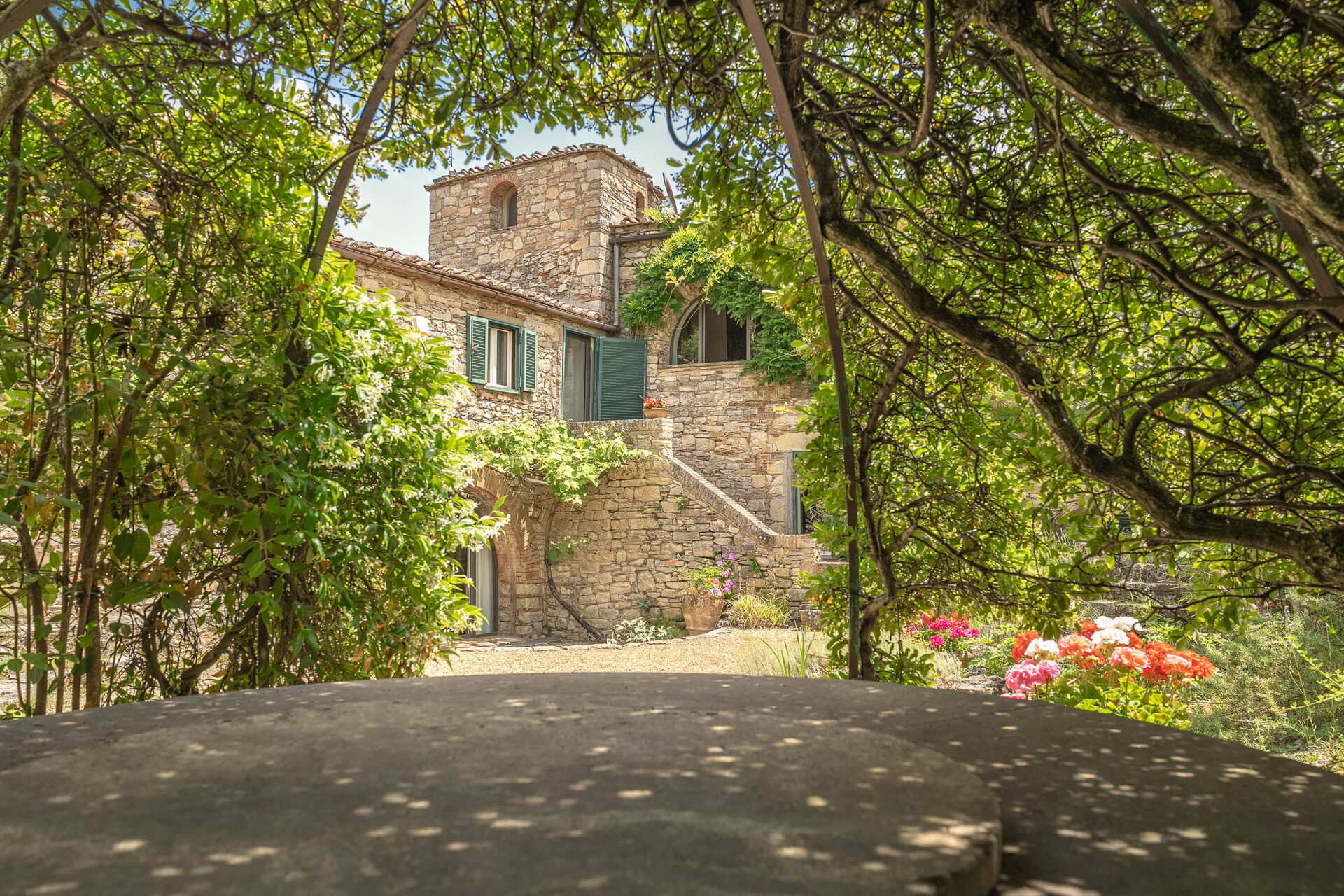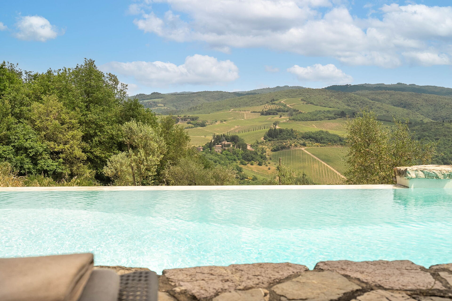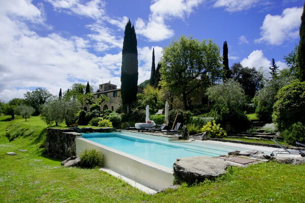Vanaf de afgelegen locatie zijn de uitzichten adembenemend, met vanuit alle ramen een beeld van het prachtige Chianti landschap op zijn best. Er is een pad dat leidt naar het mooie en panoramisch gelegen zwembad met overloopeffect. Het zwembad heeft een groot ondiep gedeelte voor kinderen. Aan de achterzijde van het huis ligt een bijgebouw waar de huishoudster woont.