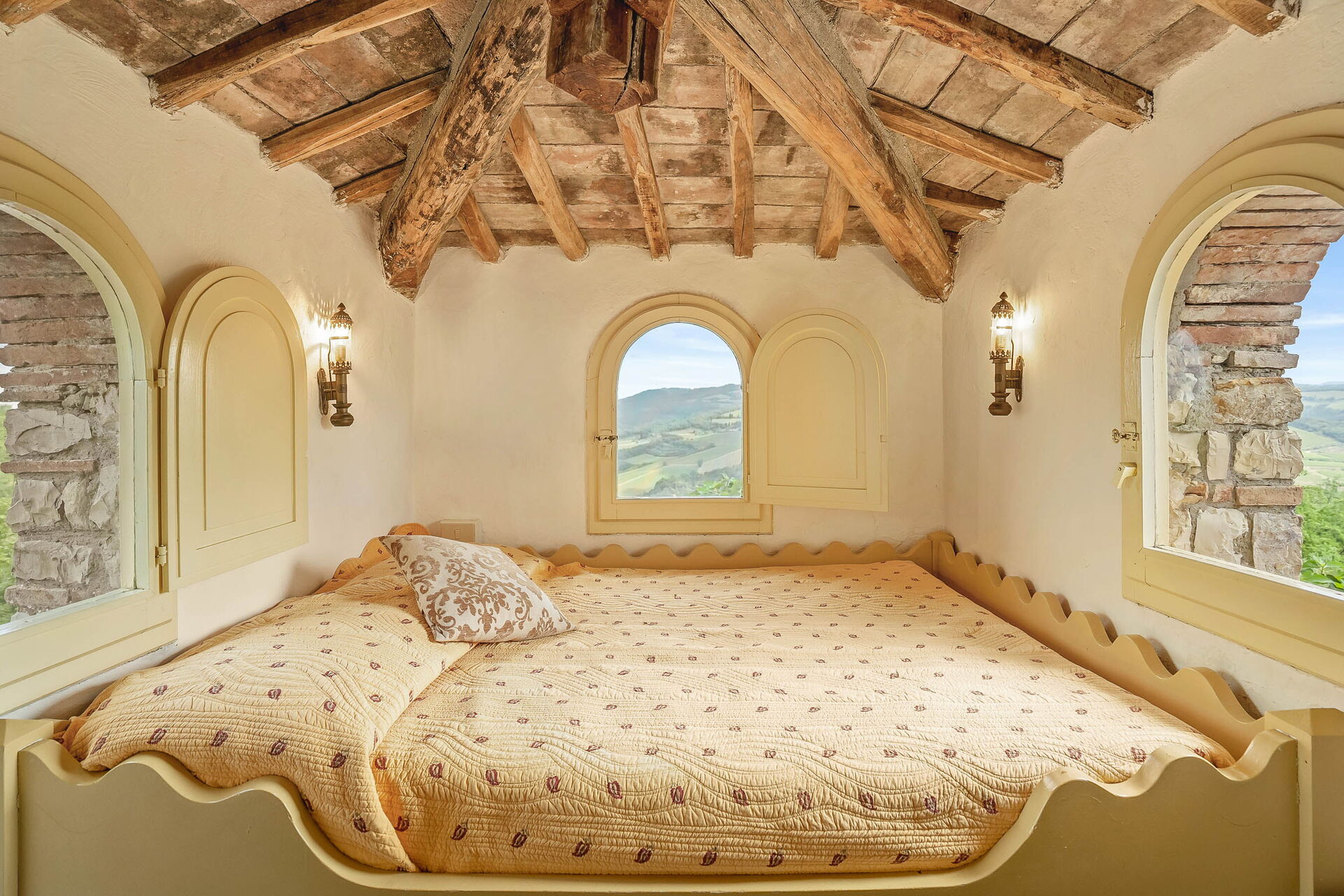Slaapkamer 3 op Verdieping 1 is in een torentje gelegen (toegankelijk over een smalle ladder/trap).