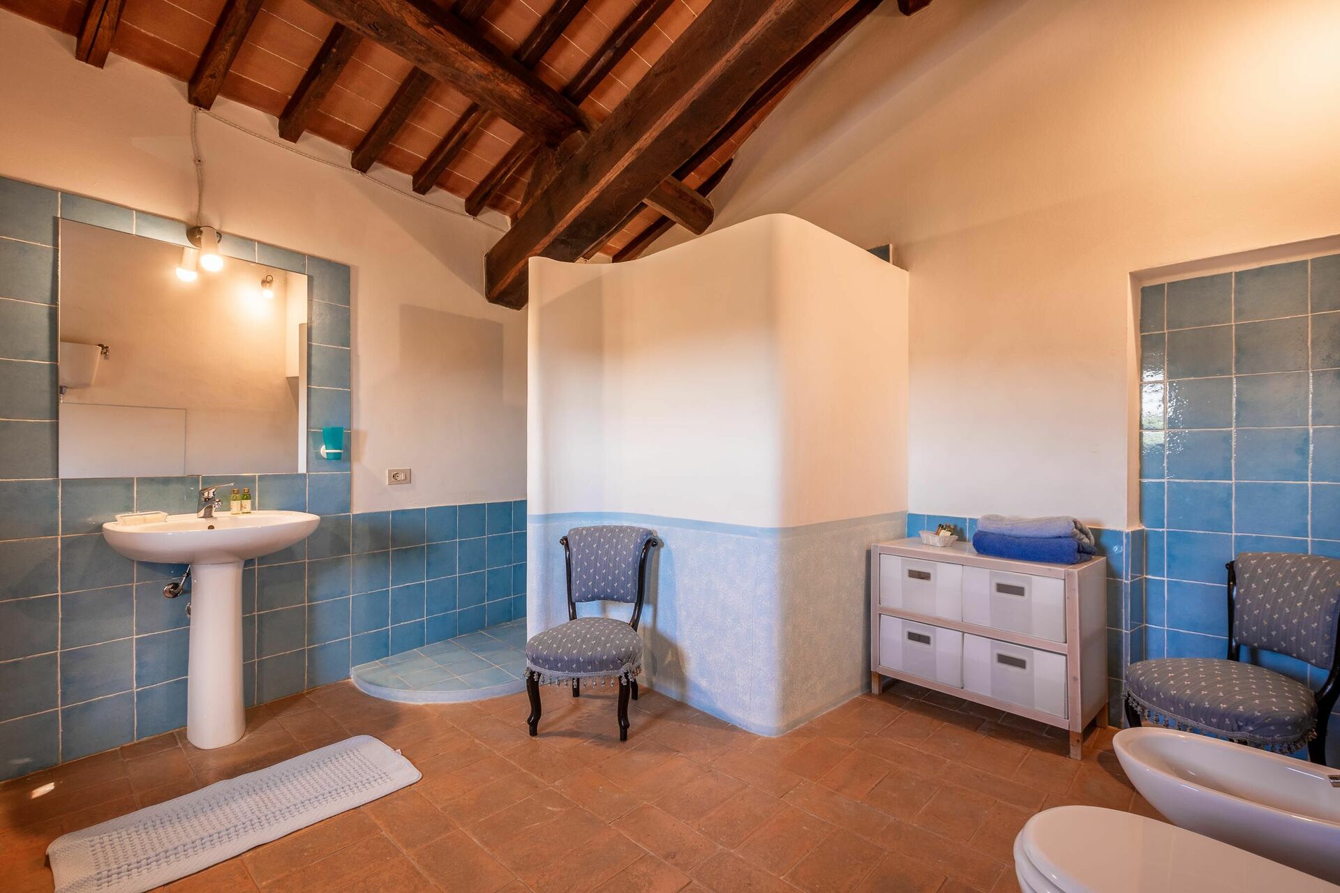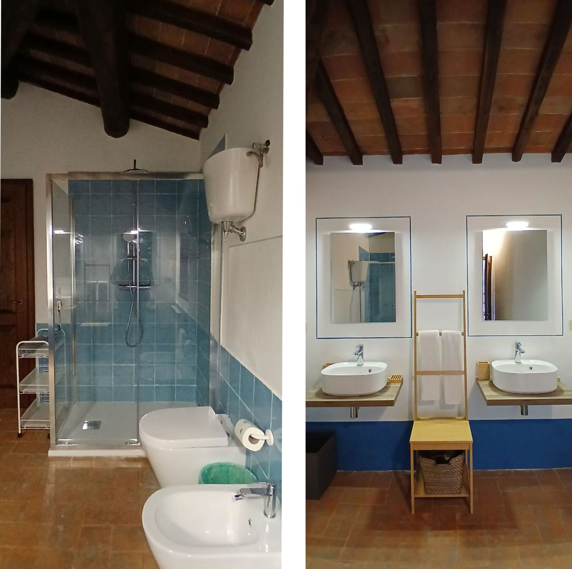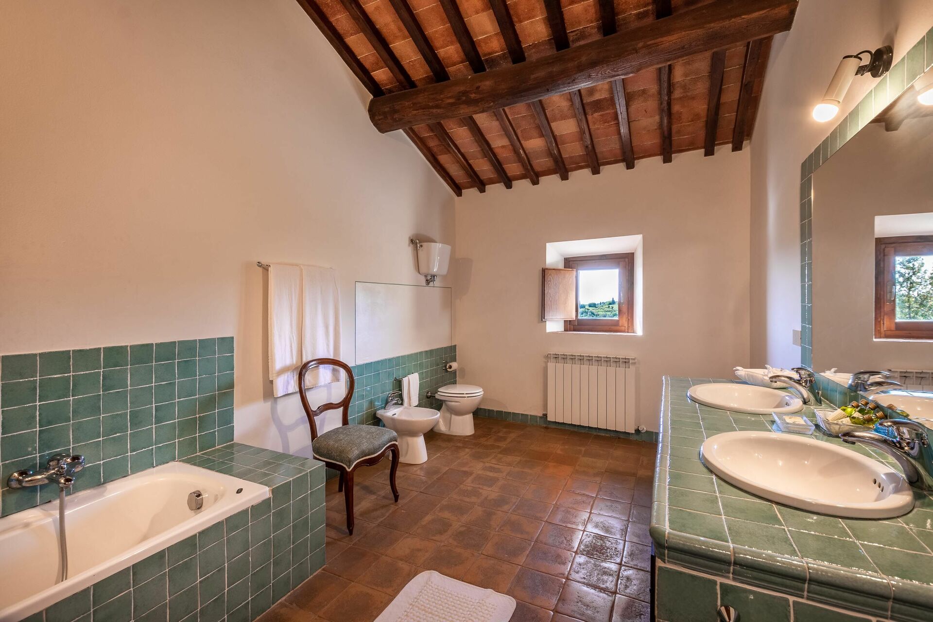 Badkamer: dubbele wastafel, toilet , bidet, bad, haardroger, WIFI internet.