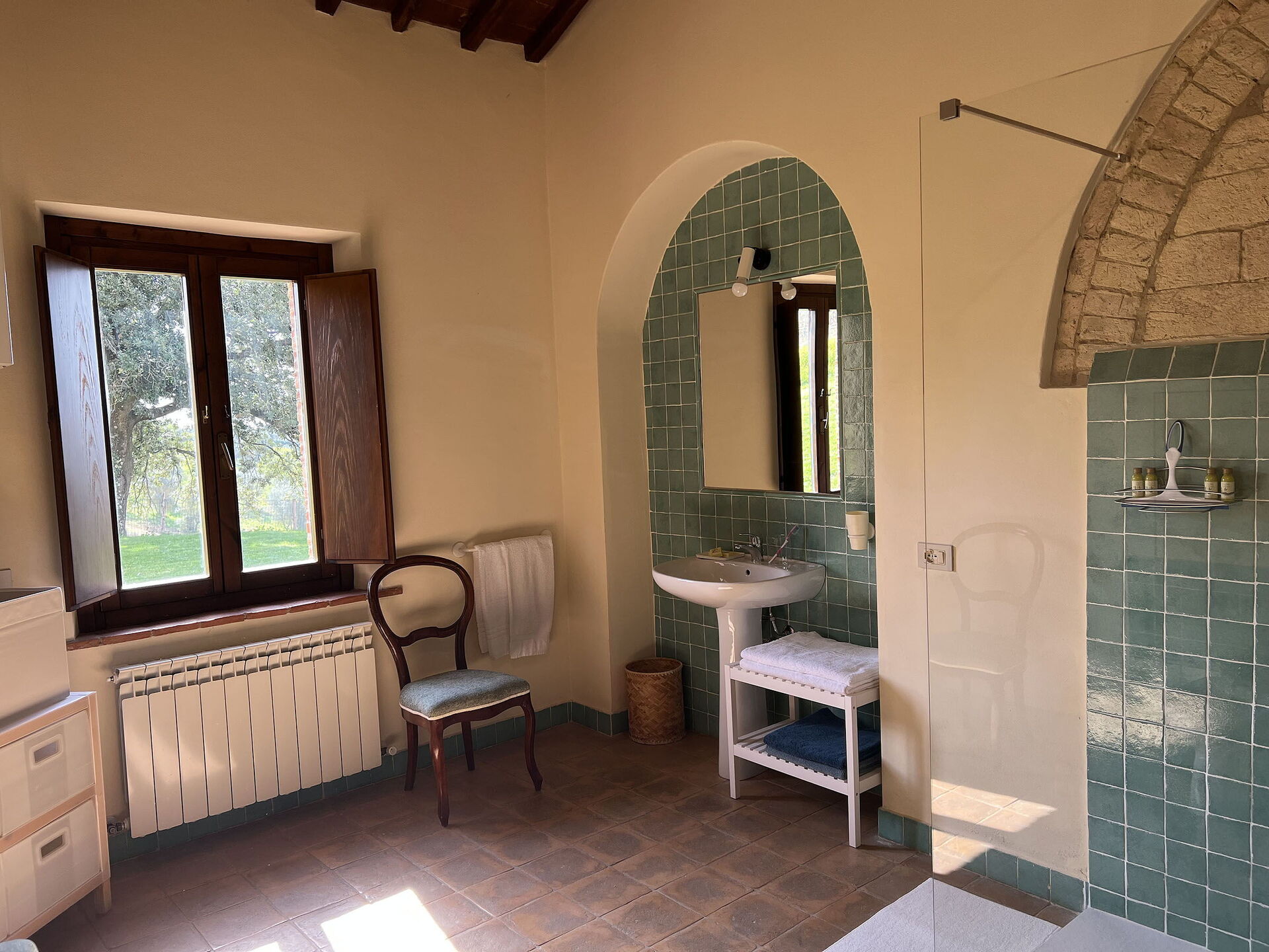 Zodra u aankomt te La Corte Di Campalli vindt u een fijne, schone en goed onderhouden woning met uitzicht over de heuvels perfect voor een geweldige vakantie in Toscane. Na een hectische dag winkelen kunt u de tijd doorbrengen met vrienden en familie bij het zwembad, en genieten van een glaasje wijn - een perfecte manier om te uitrusten aan het einde van de dag. Ook zijn er buiten beschikbaar een barbecue en patio. Als u van koken houdt is er een goed uitgeruste keuken met o.a. koffiezetapparaat, magnetron oven, broodrooster, fornuis en ijskast en natuurlijk voldoende servies en bestek voor tot 12 personen. Als u liever buiten eet is er een patio waar u van het weer kan genieten terwijl u buiten eet.
