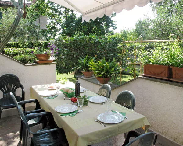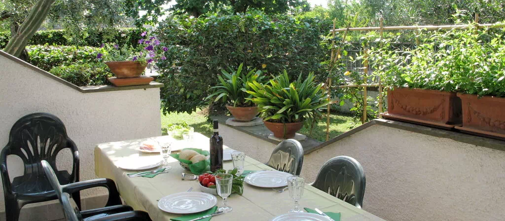 "Mia" is een elegant tweefamiliewoning gelegen in Capanne-prato-cinquale, Italië. Het pand combineert privéwooneenheden met uitgebreide gemeenschappelijke terreinen en biedt een verfijnd en comfortabel verblijf voor gasten die zowel ontspanning als gemak waarderen. De omvangrijke gemeenschappelijke gronden van 600 m² zijn voorzien van een gevarieerde selectie planten en bomen, wat het geheel een weelderige en gastvrije uitstraling geeft.